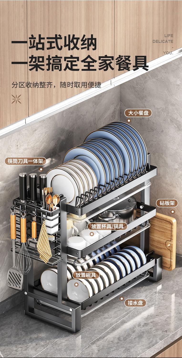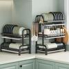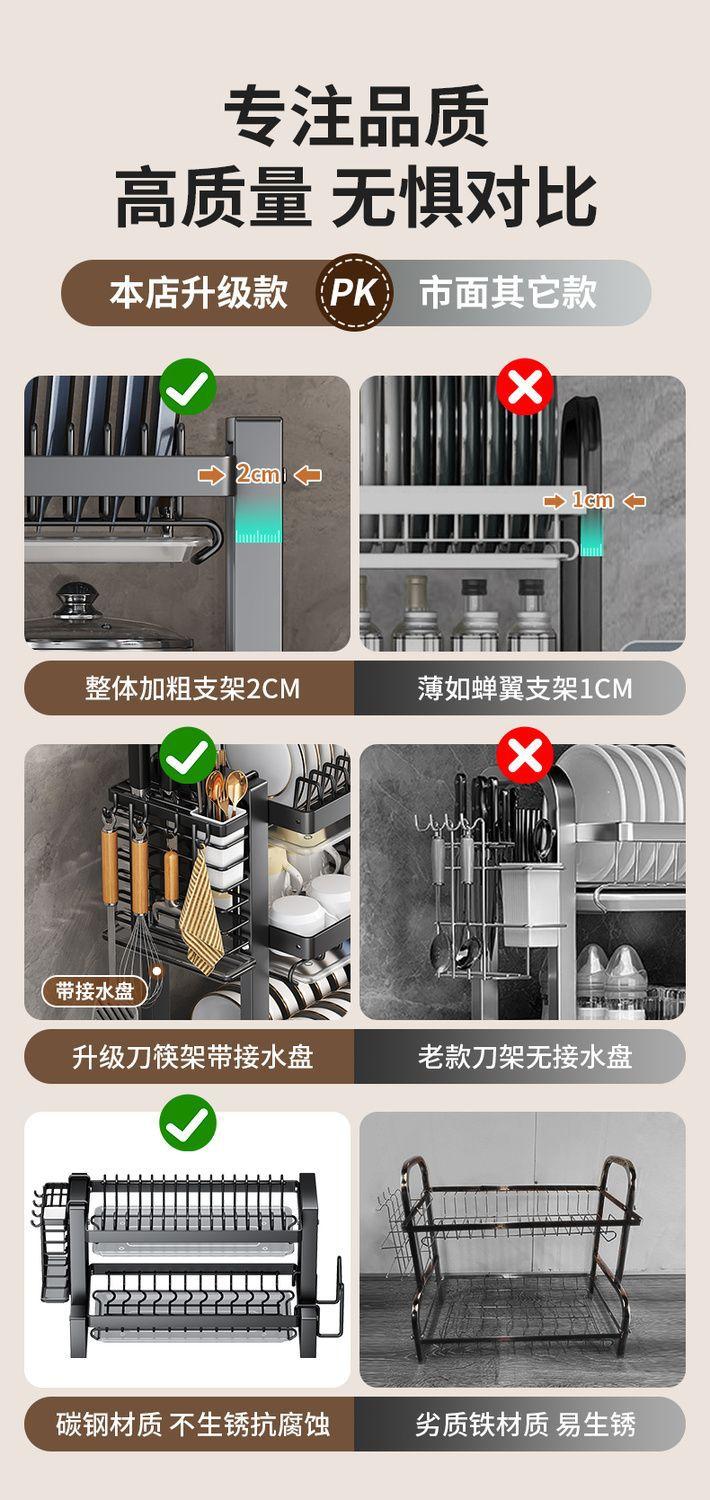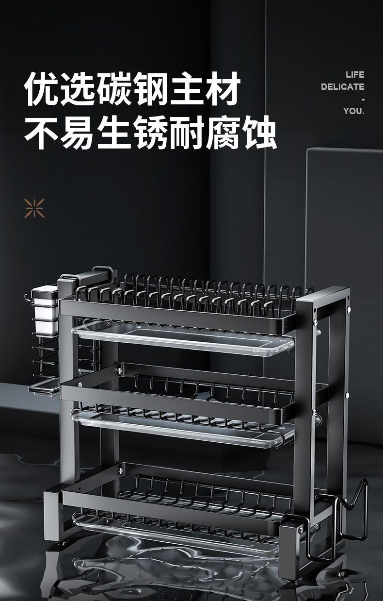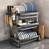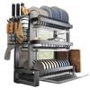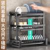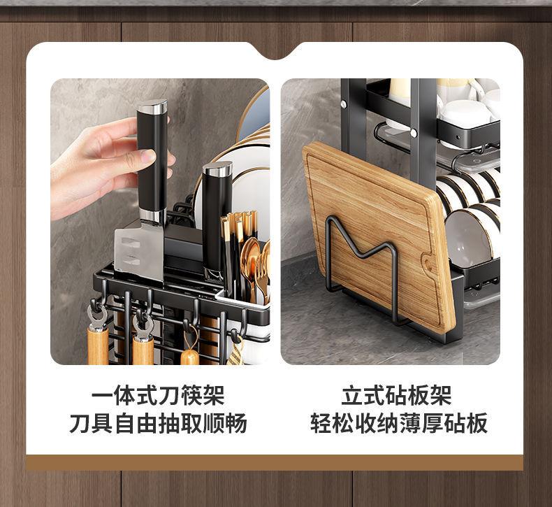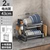 Electric black [high-quality dish rack] upgraded thickened steel - double-layer 43cm main rack with integrated knife and chopstick hook rack - cutting board rack