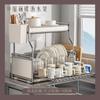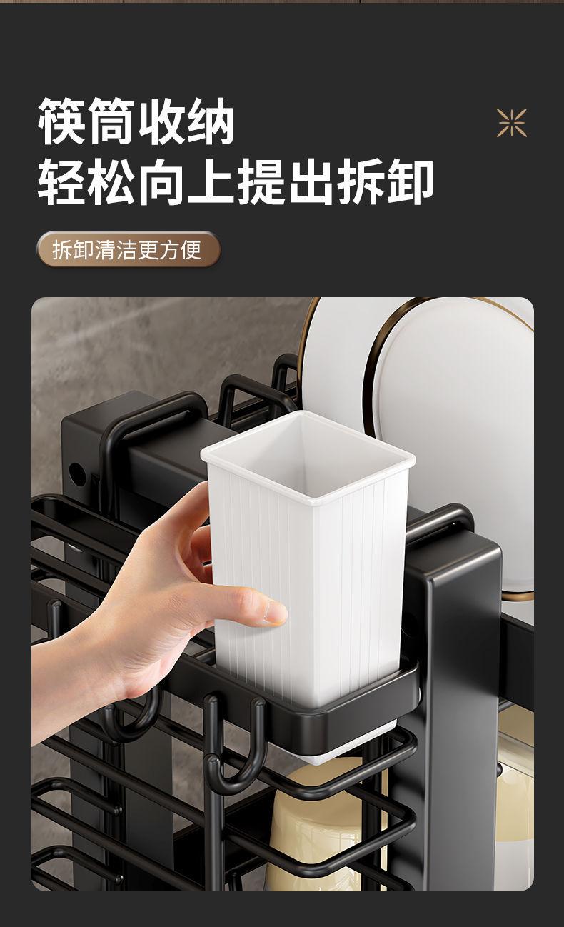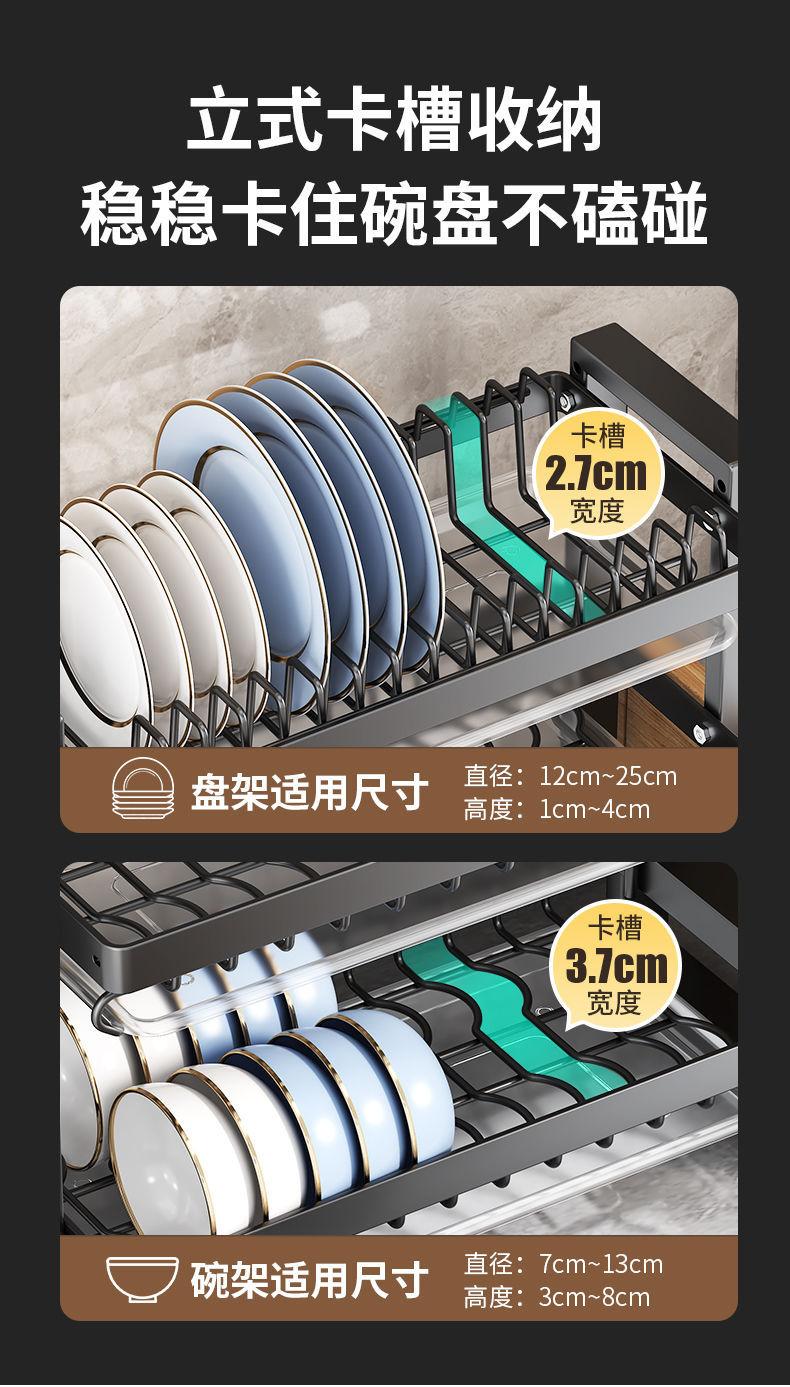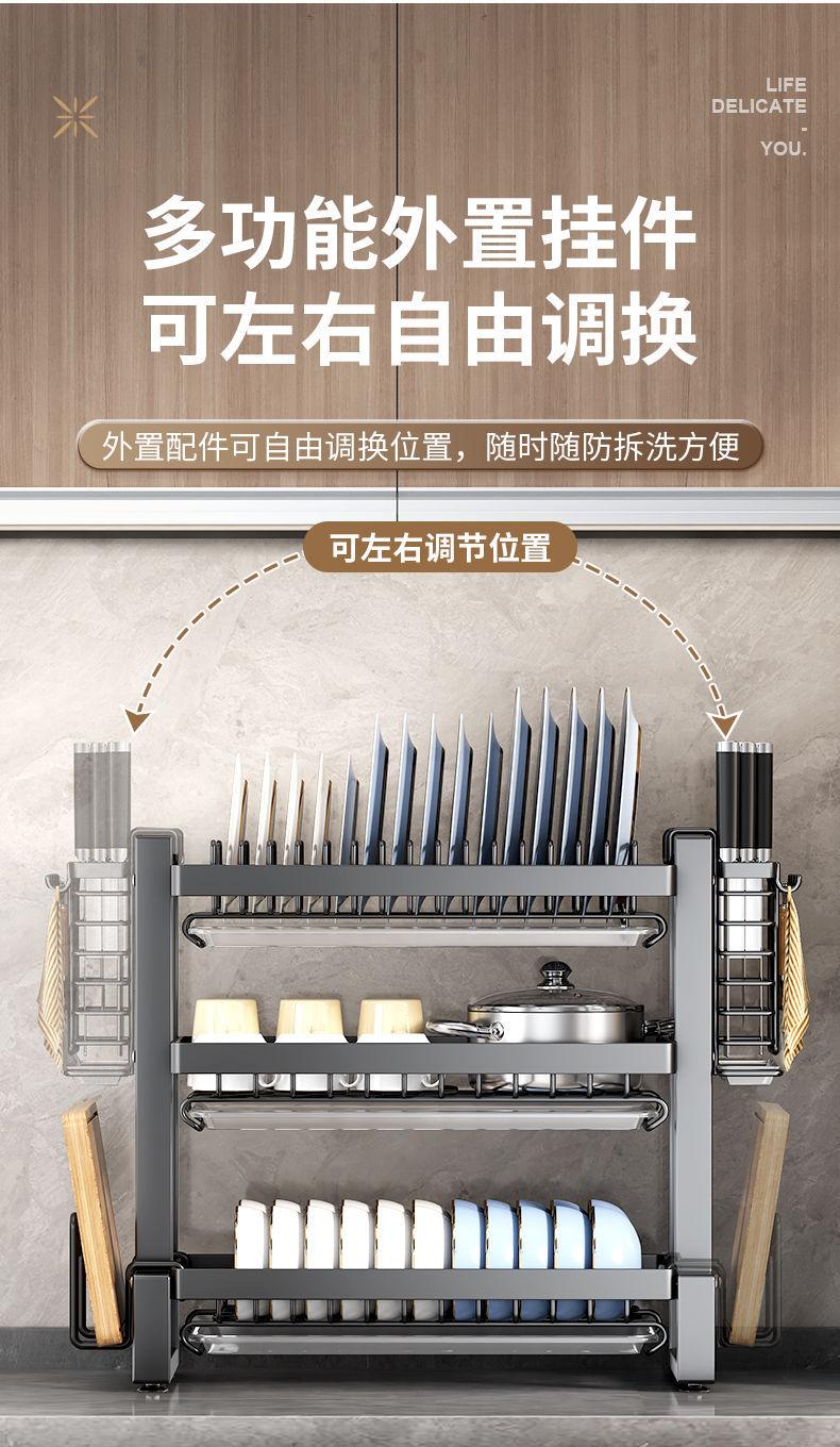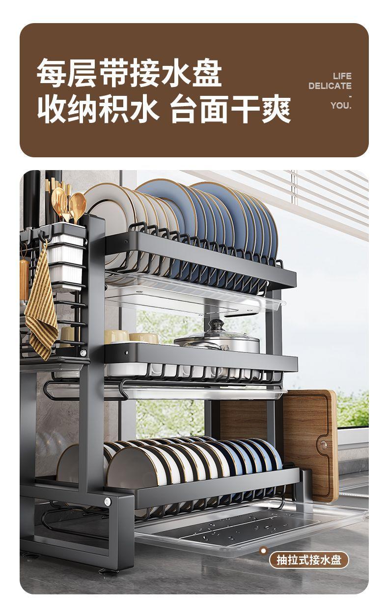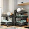 Electric black [high-quality dish rack] upgraded thickened steel - double-layer 43cm main rack with integrated knife and chopstick hook rack - cutting board rack