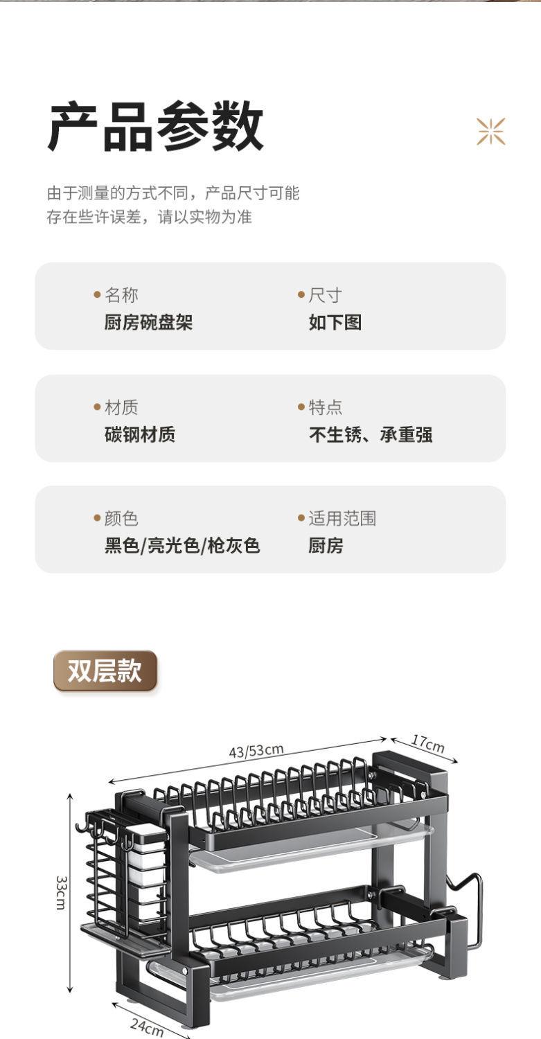 Electric black [high-quality dish rack] upgraded thickened steel - double layer 55cm - single main rack