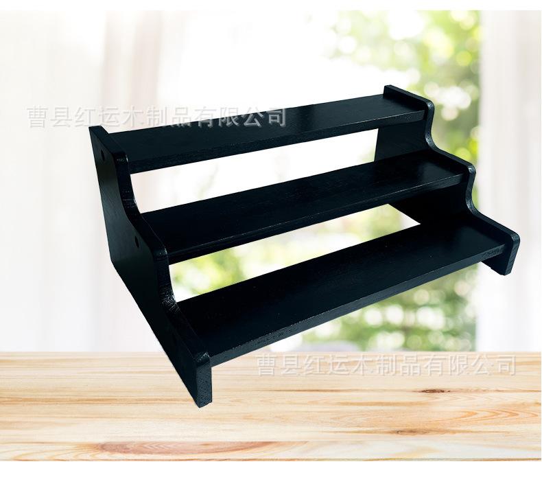 Prateleira de Madeira para Temperos de Cozinha Escada de Três Camadas Prateleira para Armazenamento de Perfumes Organizador de Cosméticos para Banheiro Prateleira para Exposição de Sobremesas