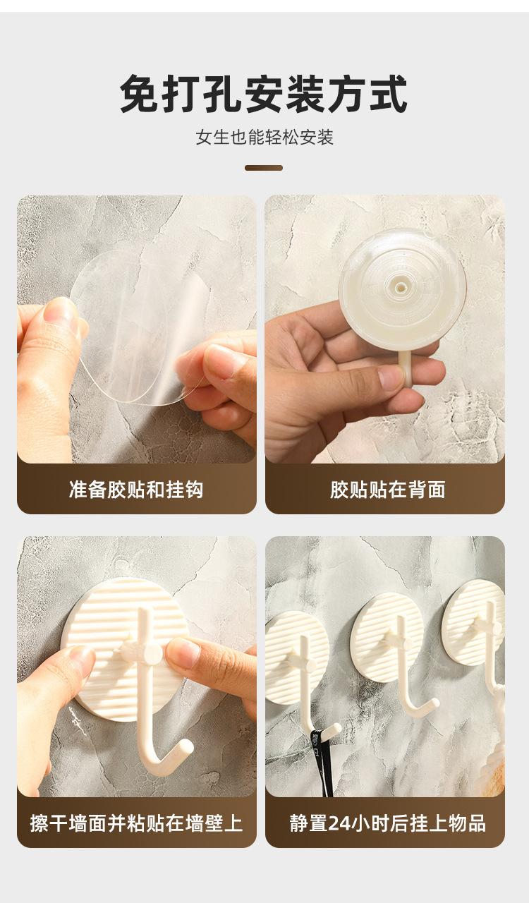 Ganchos Adesivos de Luxo Leve, Forte Capacidade de Carga, Ganchos Adesivos Sem Furo para Banheiro, Ganchos Adesivos Sem Marcas na Parede, Ganchos Adesivos à Prova d'Água