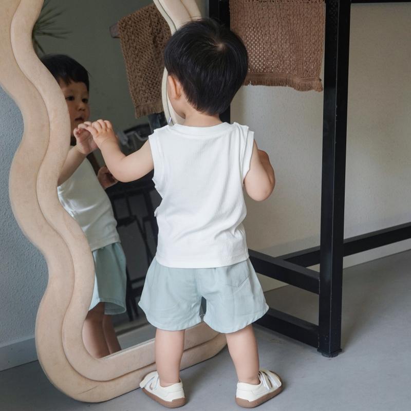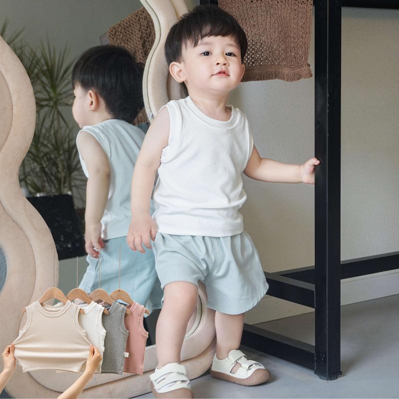 25 Regata para Meninos e Meninas Nova Camiseta Verão Roupas Infantis Roupa Exterior Cava Sem Mangas Versátil Top Infantil Dropshipping
