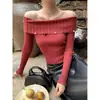 Suéter Listrado de Verão 2024 de Um Ombro Fino Retrô Cintura Temperamento Design Slim Nicho Manga Curta Mulheres