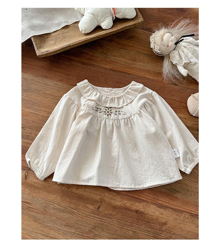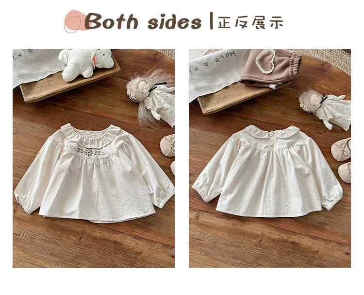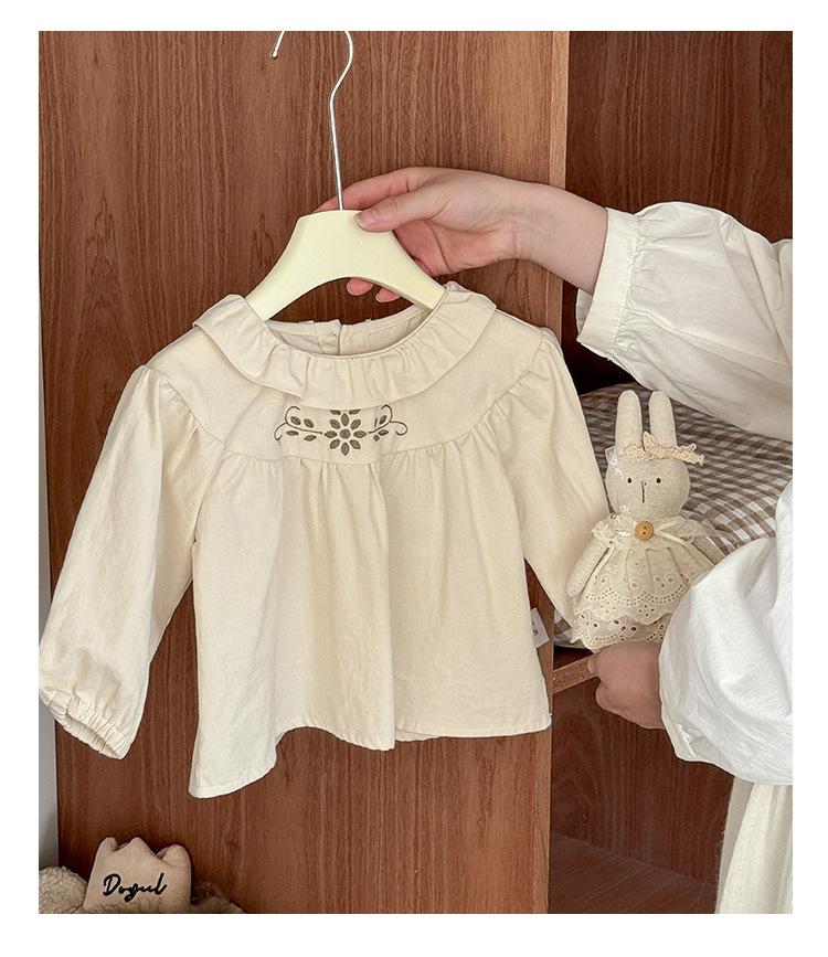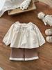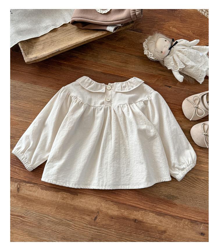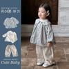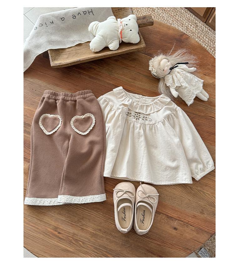 Conjunto Infantil Feminino Outono Novo Estilo Bebê Menina Gola de Renda Camisa de Boneca Manga Longa Top Infantil Calças Conjunto de Duas Peças Classe A