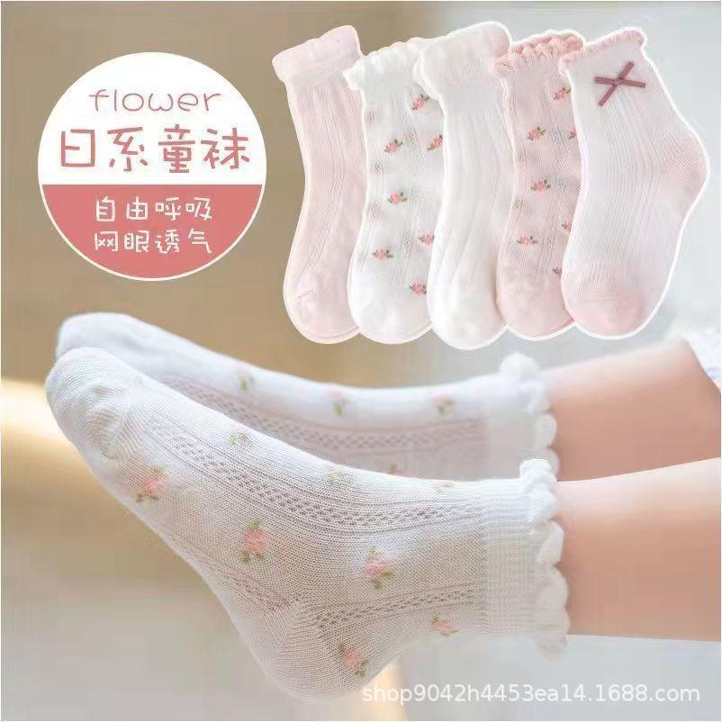Meias para meninas primavera e verão meias de algodão finas para crianças meias para bebês verão grandes meias de malha de renda princesa infantil atacado