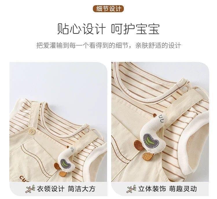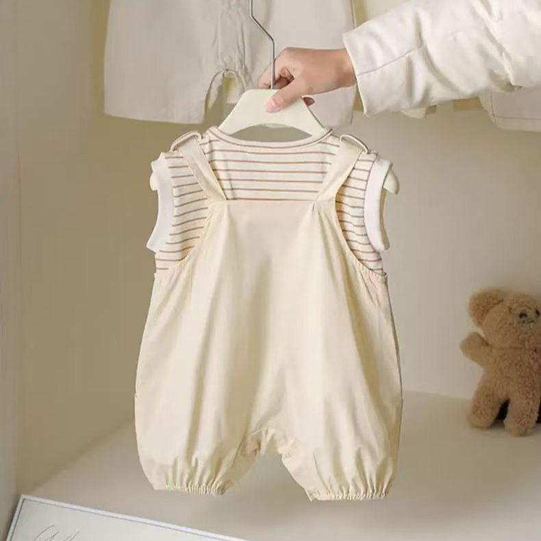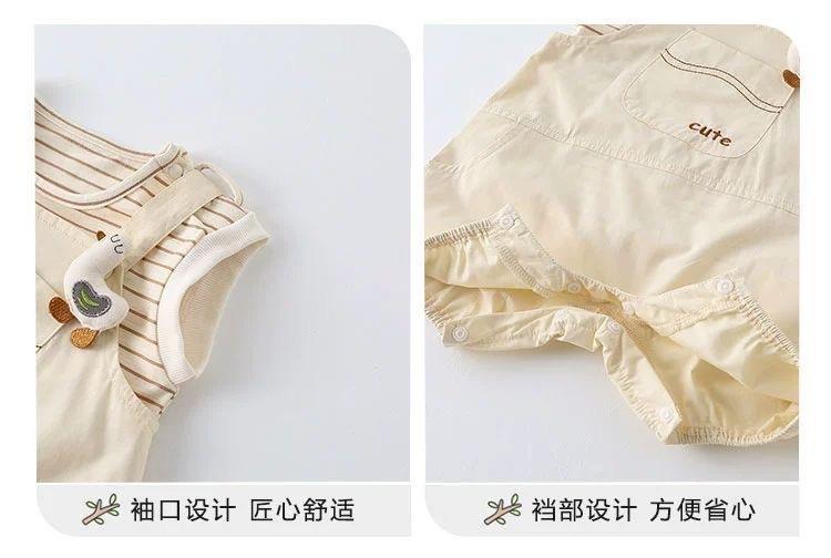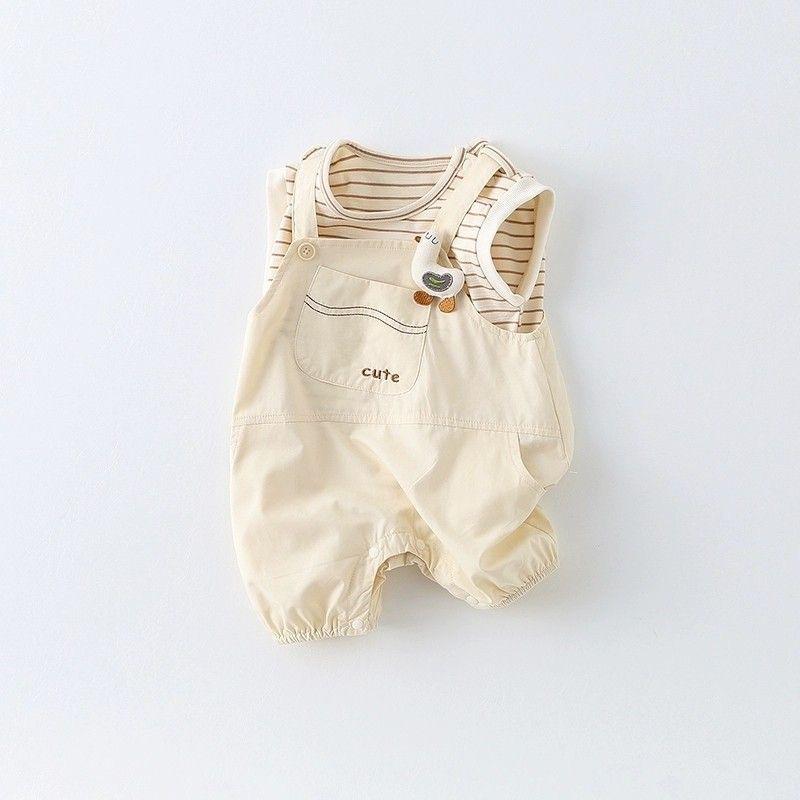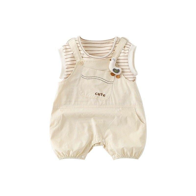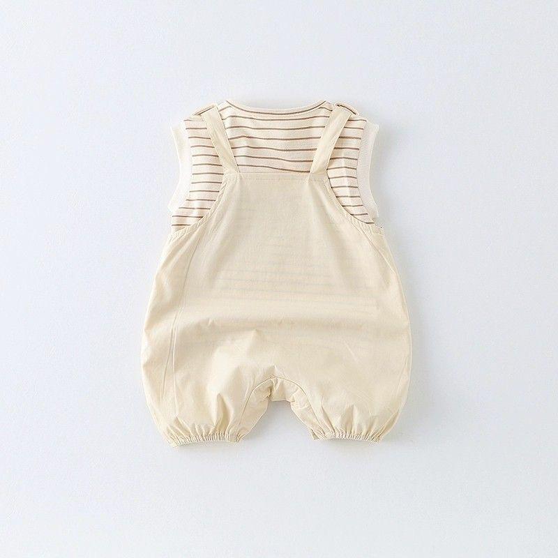 Roupa de Bebê Macacão de Verão Conjunto Bebê Listrado Sem Mangas Recém-Nascido Verão Dividido Conjunto Real de Duas Peças Fino