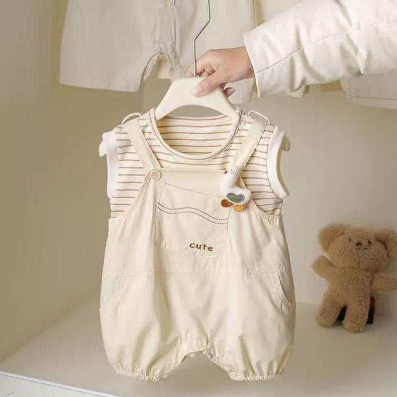 Compre Roupa de Bebê Macacão de Verão Conjunto Bebê Listrado Sem Mangas Recém-Nascido Verão Dividido Conjunto Real de Duas Peças Fino no atacado no Joom.pro