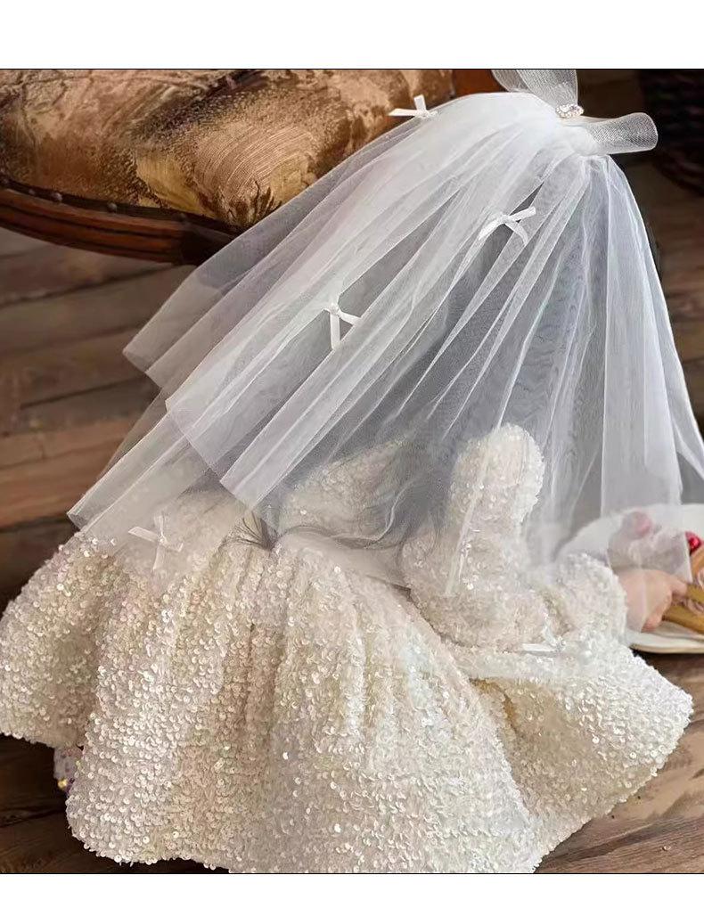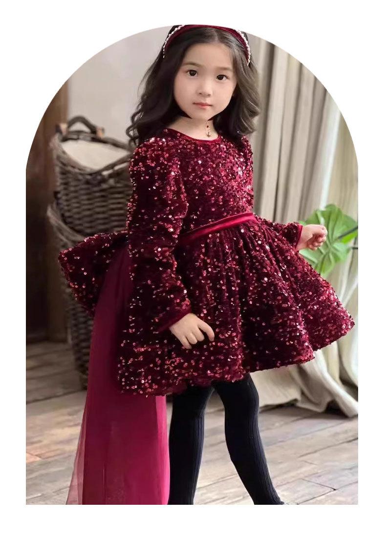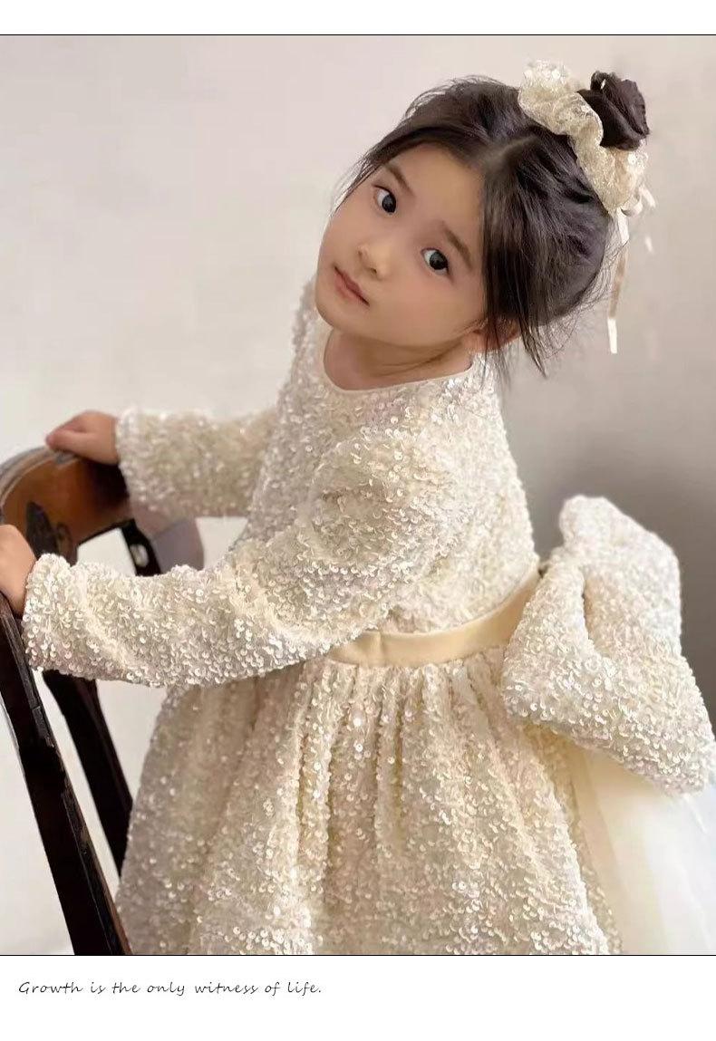Saia de Paetês Brilhantes de Outono e Inverno Saia de Princesa para Meninas Cauda com Laço Pesado Vestidinho de Malha Saia de Aniversário para Menininha
