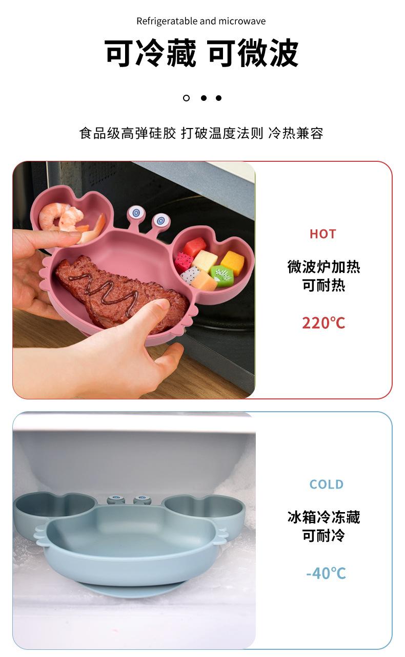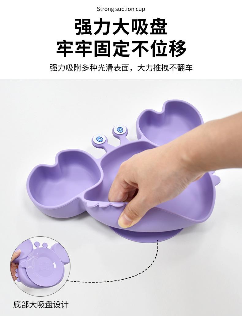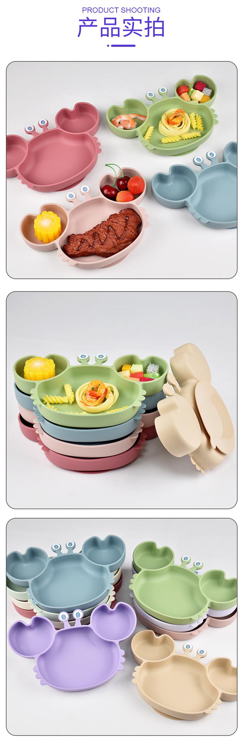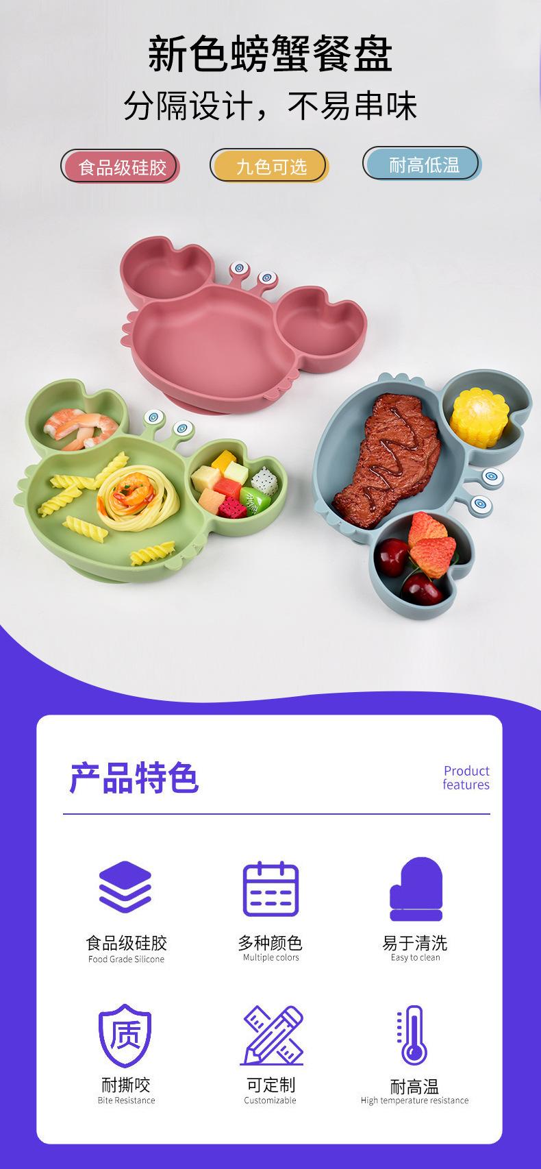 Novo Prato de Caranguejo de Desenho Animado Transfronteiriço Peça Única Ventosa Talheres de Alimentação Prato de Silicone Infantil de Qualidade Alimentar