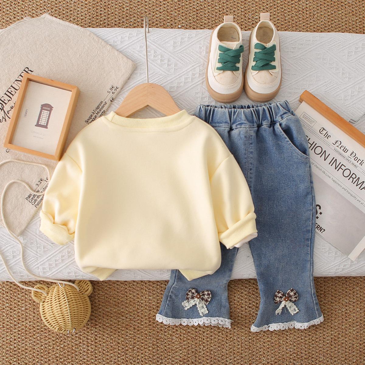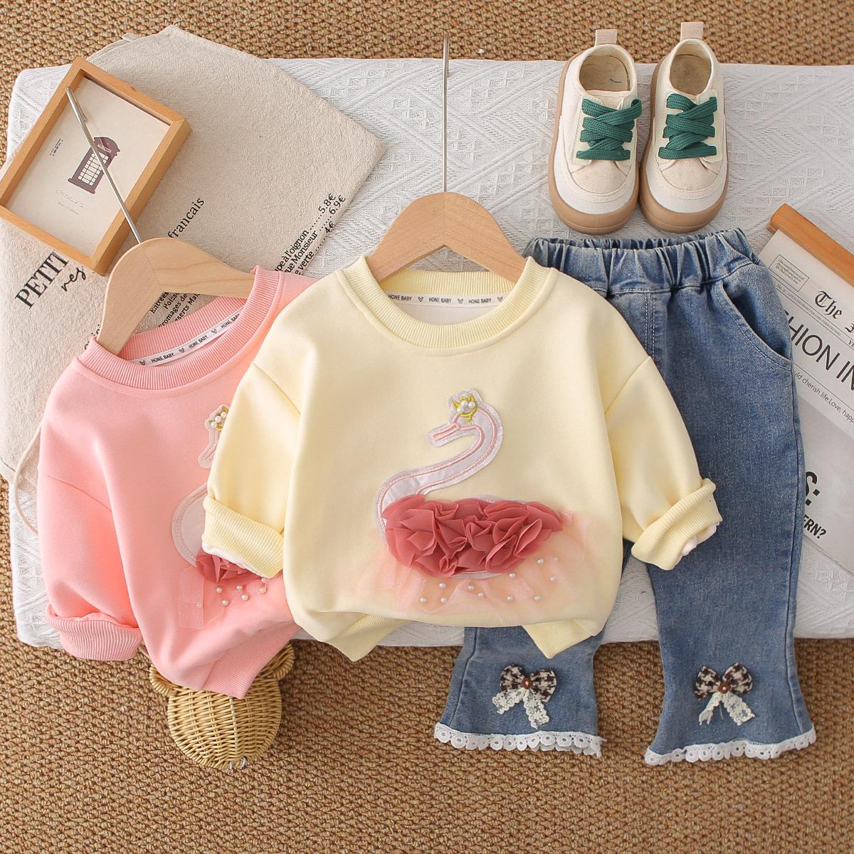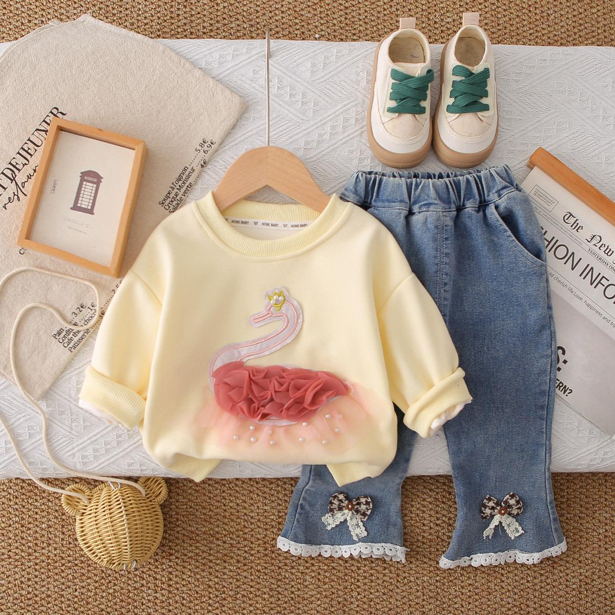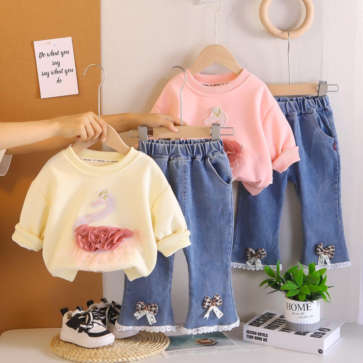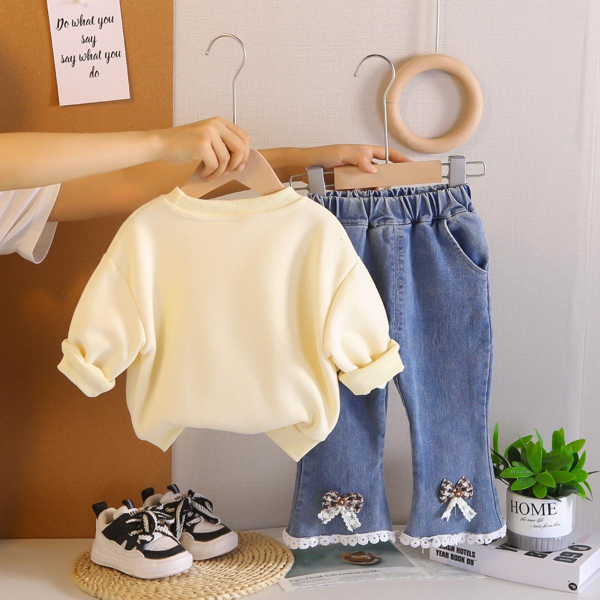 Conjunto de moletom para bebê menina 2025 primavera e outono nova moda roupas de menina de um ano conjunto de duas peças de manga comprida