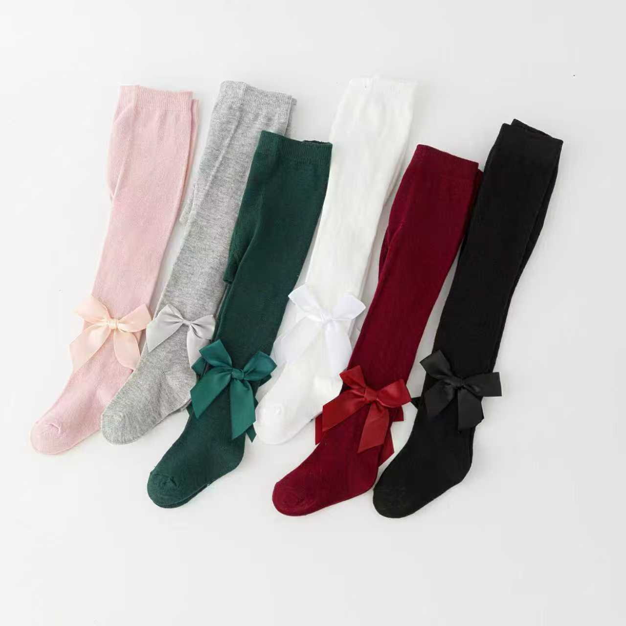 Primavera e Outono Tendência Transfronteiriça Europeia e Americana Laço Meias para Bebê Bumbum Grande Leggings para Bebê Meninas Meias Inteiriças