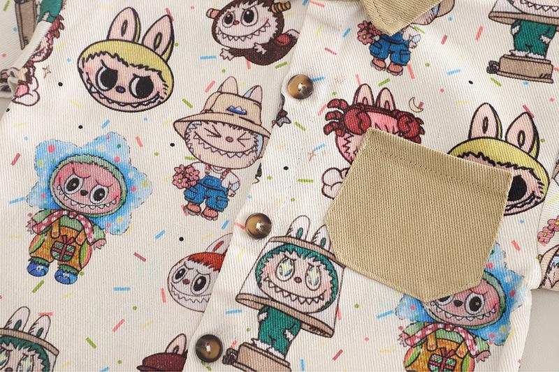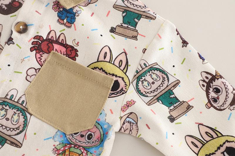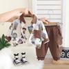 Conjunto de Outono para Meninos 2025 Novo Estilo Menininho Primavera e Outono Jaqueta de Desenho Animado Roupa de Bebê Menino Outono Manga Longa Conjunto de Três Peças