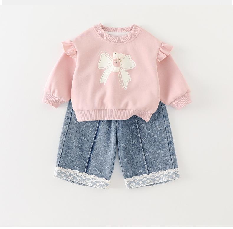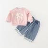 Roupinhas para bebê de um ano outono conjunto de manga comprida desenho animado fofo para criança primavera e outono conjunto moderno de duas peças para exterior