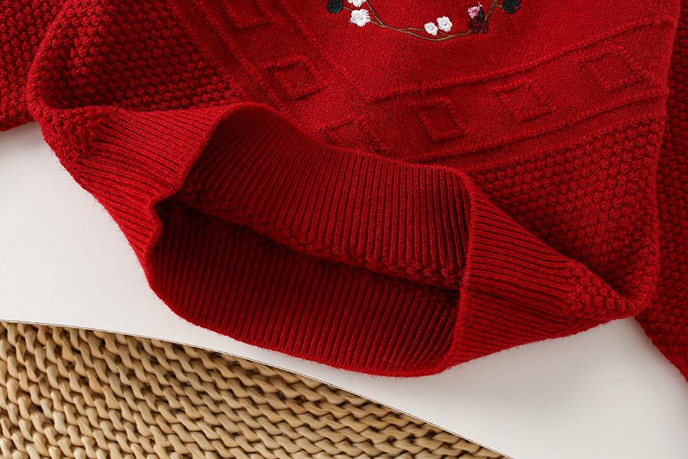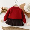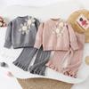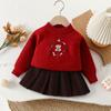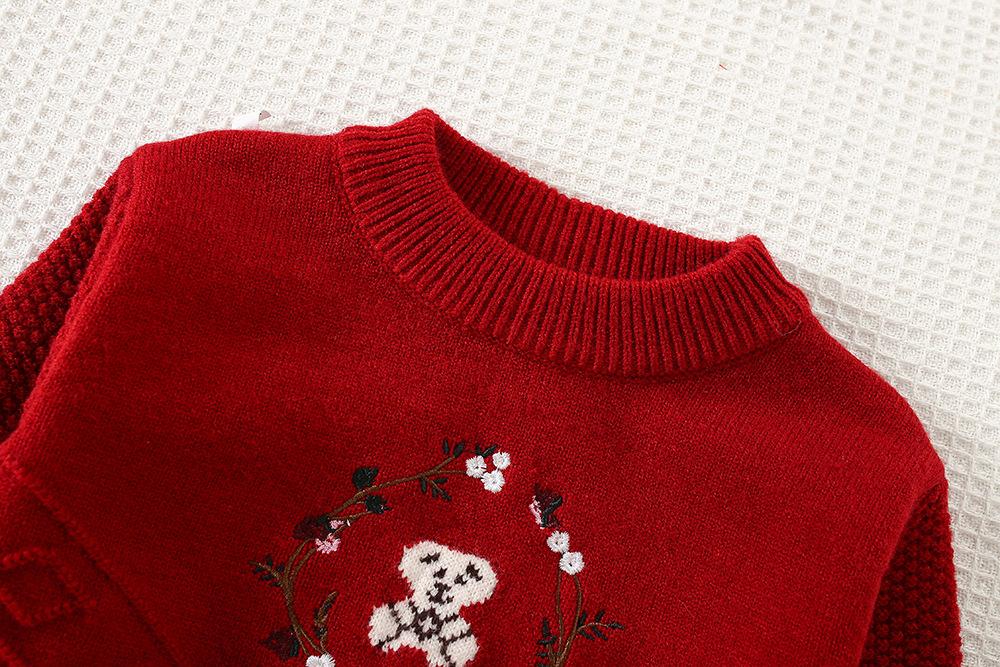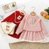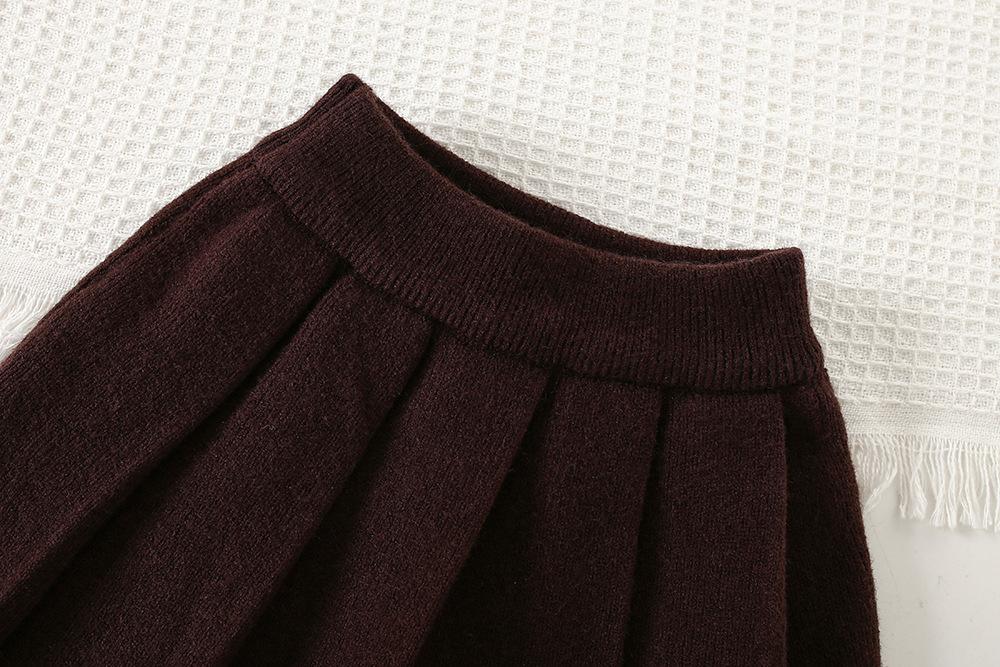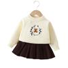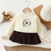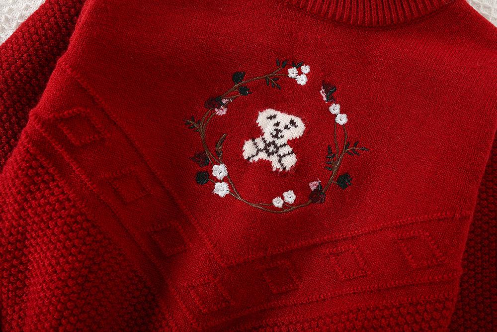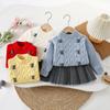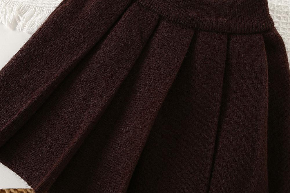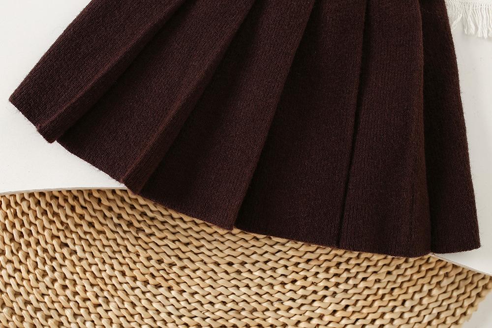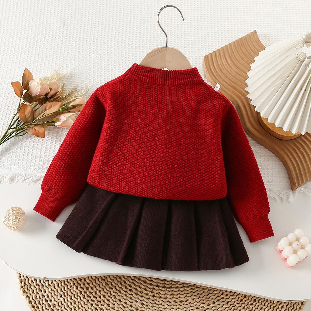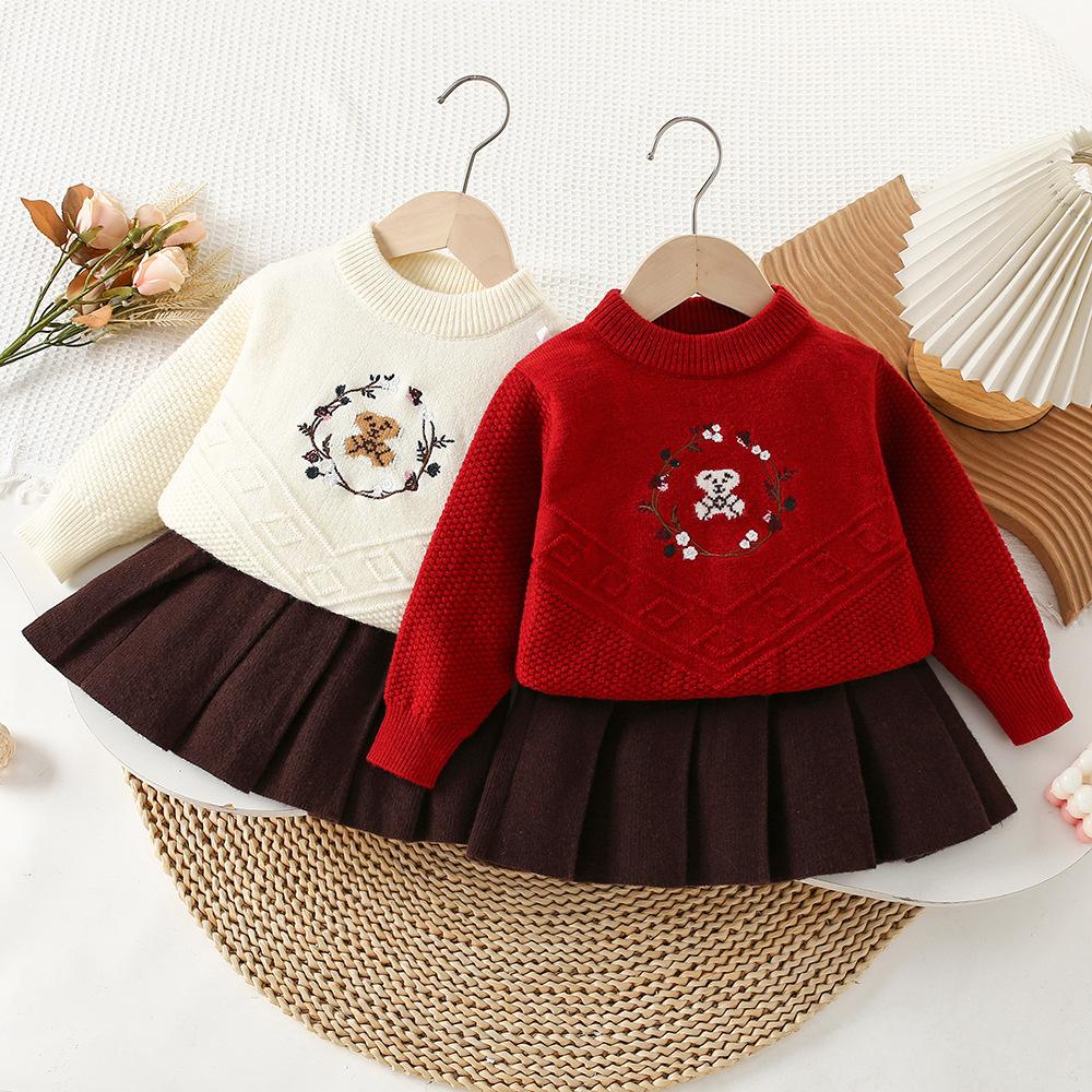 Conjunto de saia e suéter infantil outono e inverno novo estilo bebê menina tricô bordado conjunto ursinho estilo coreano fofo suéter gola redonda maré