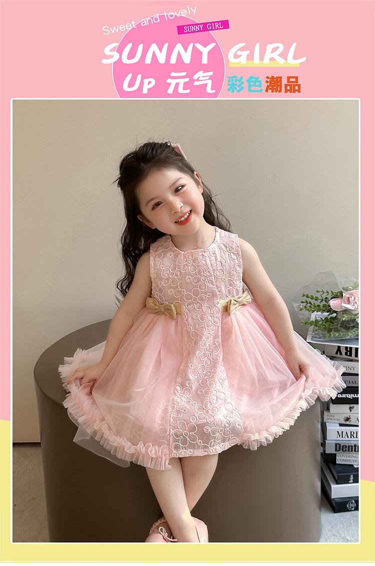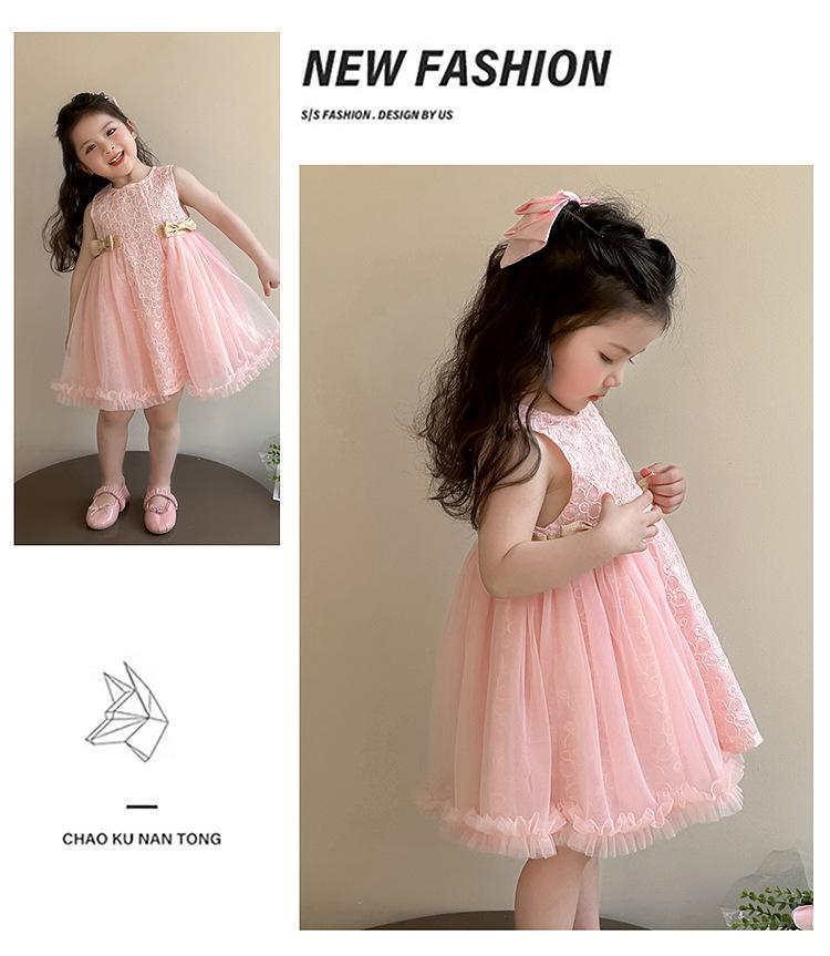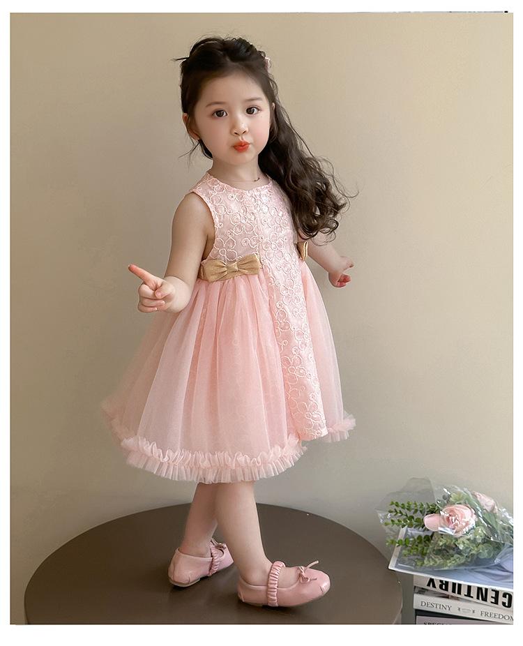 Vestido de Verão para Meninas 2025 Novo Estilo Bebê Vestido Regata de Malha Sem Mangas Infantil Verão Princesa