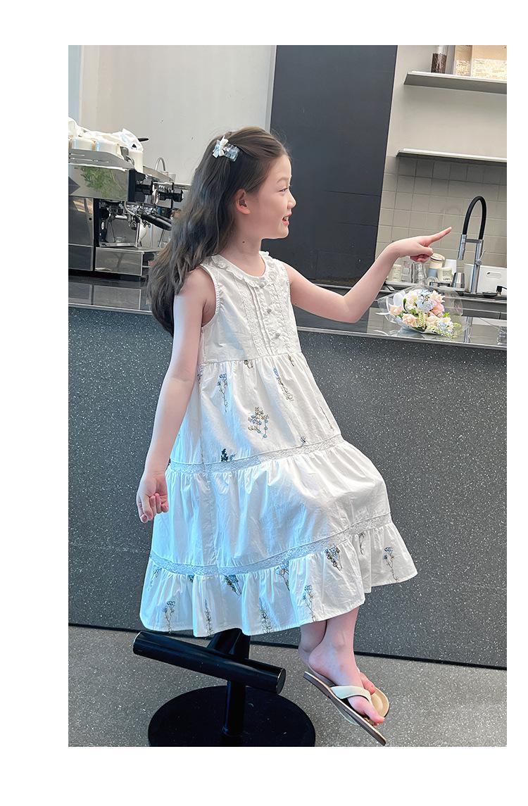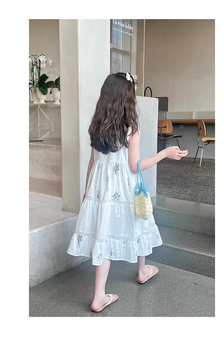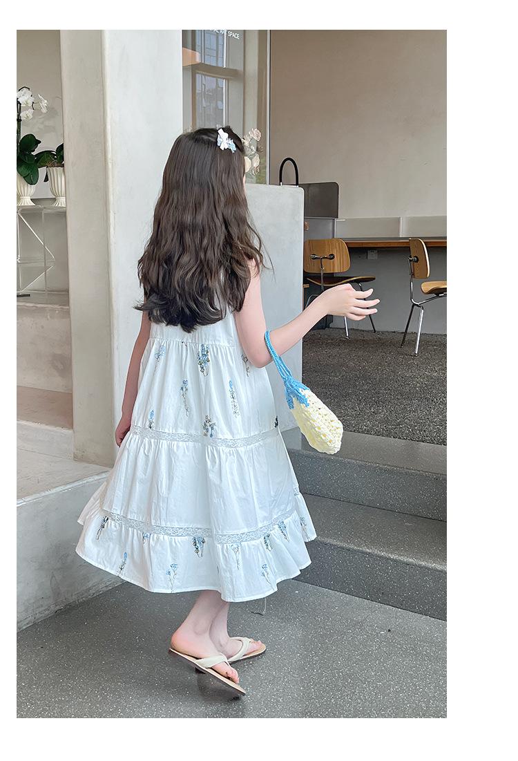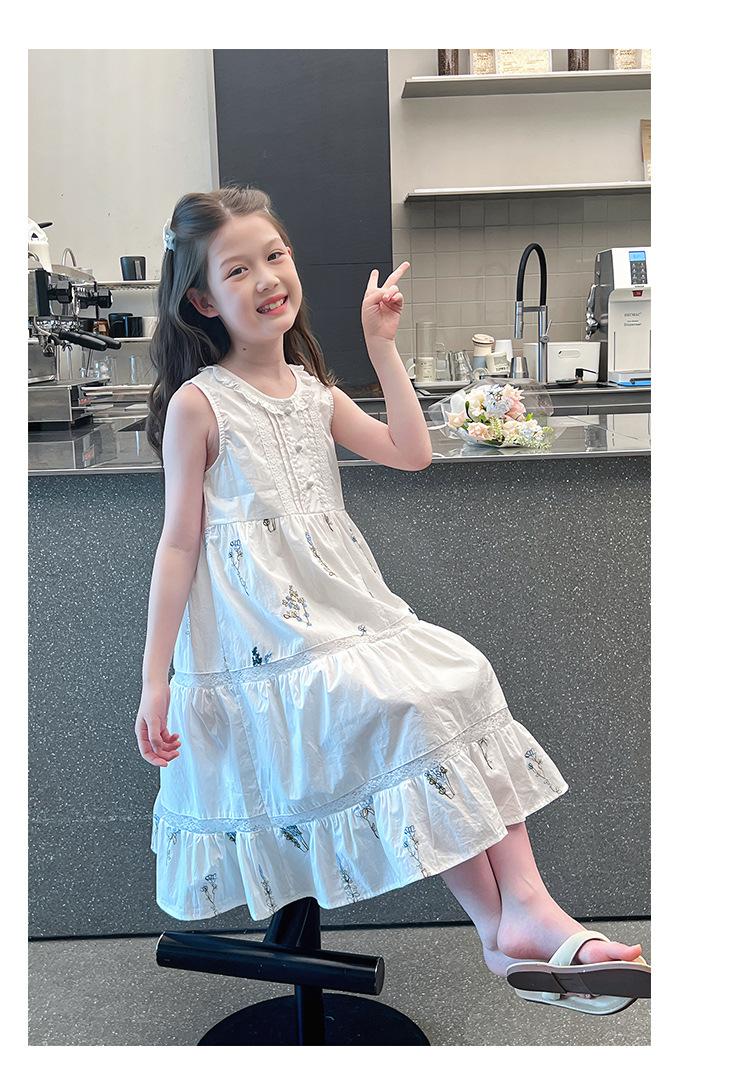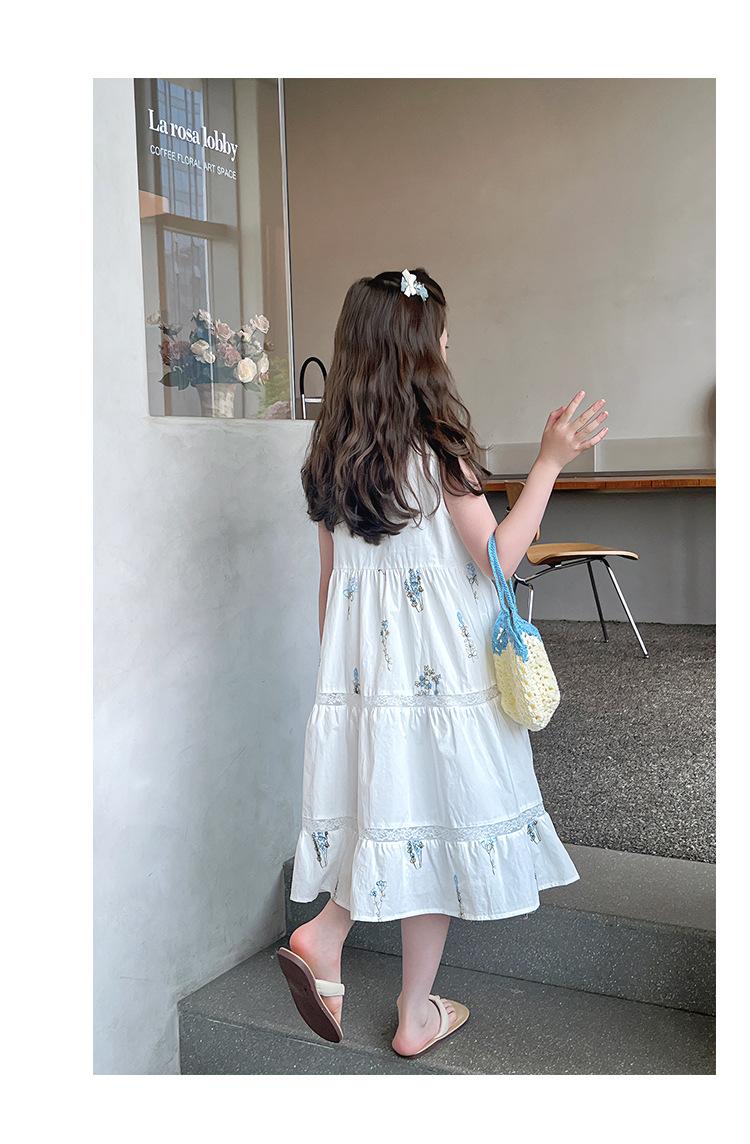 Estilo Infantil para Crianças Grandes Saia Branca com Recortes Florais Vestido de Princesa para Meninas Saia Longa Vestido Infantil Verão 2025 Novo Estilo