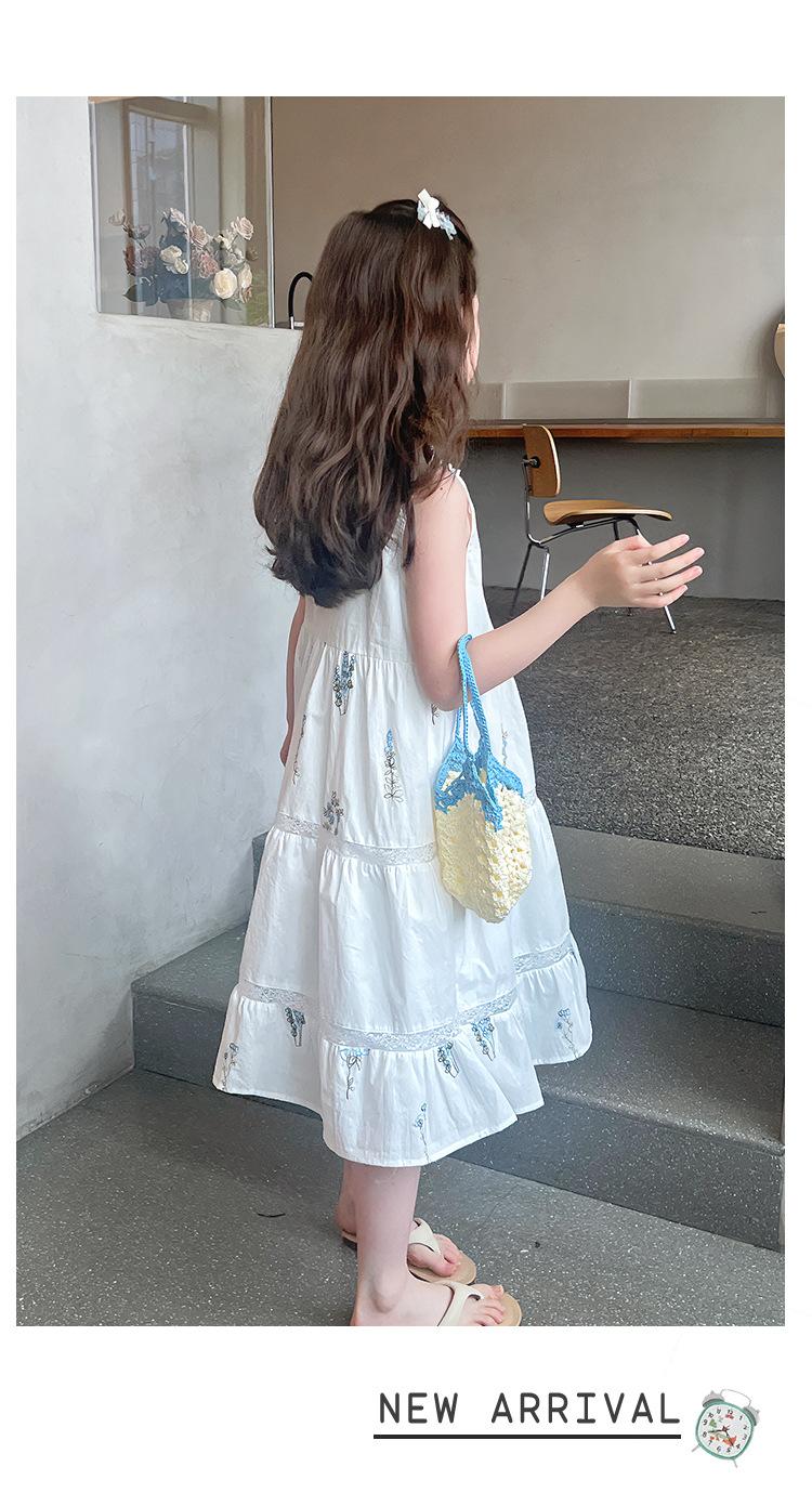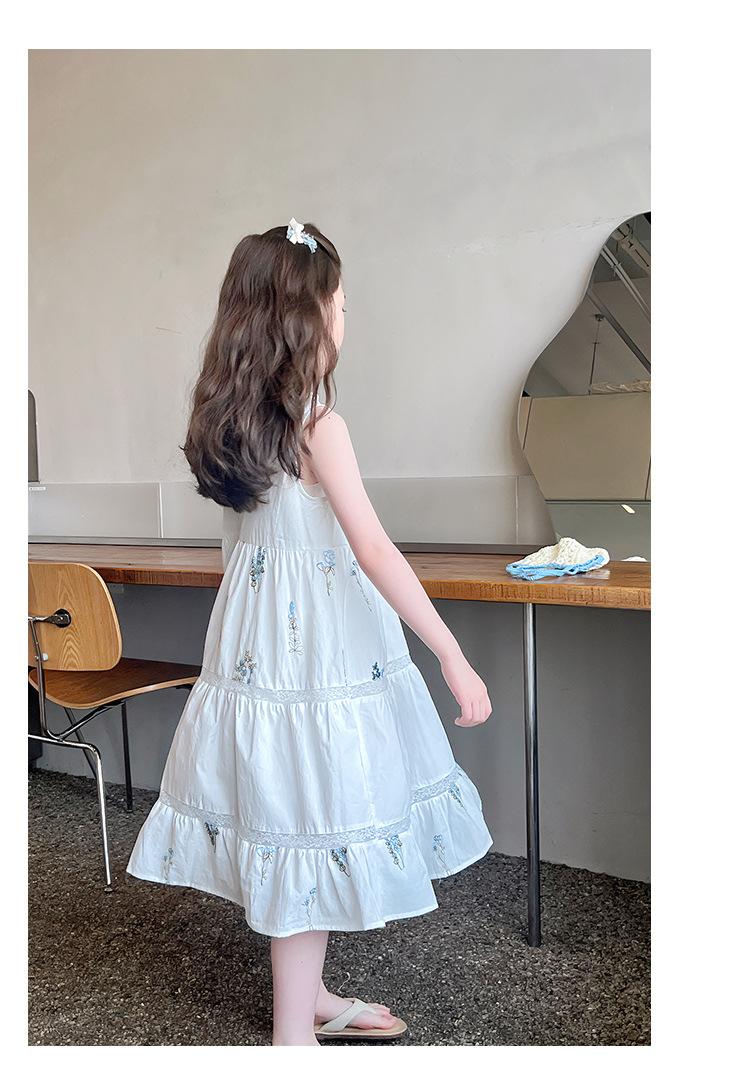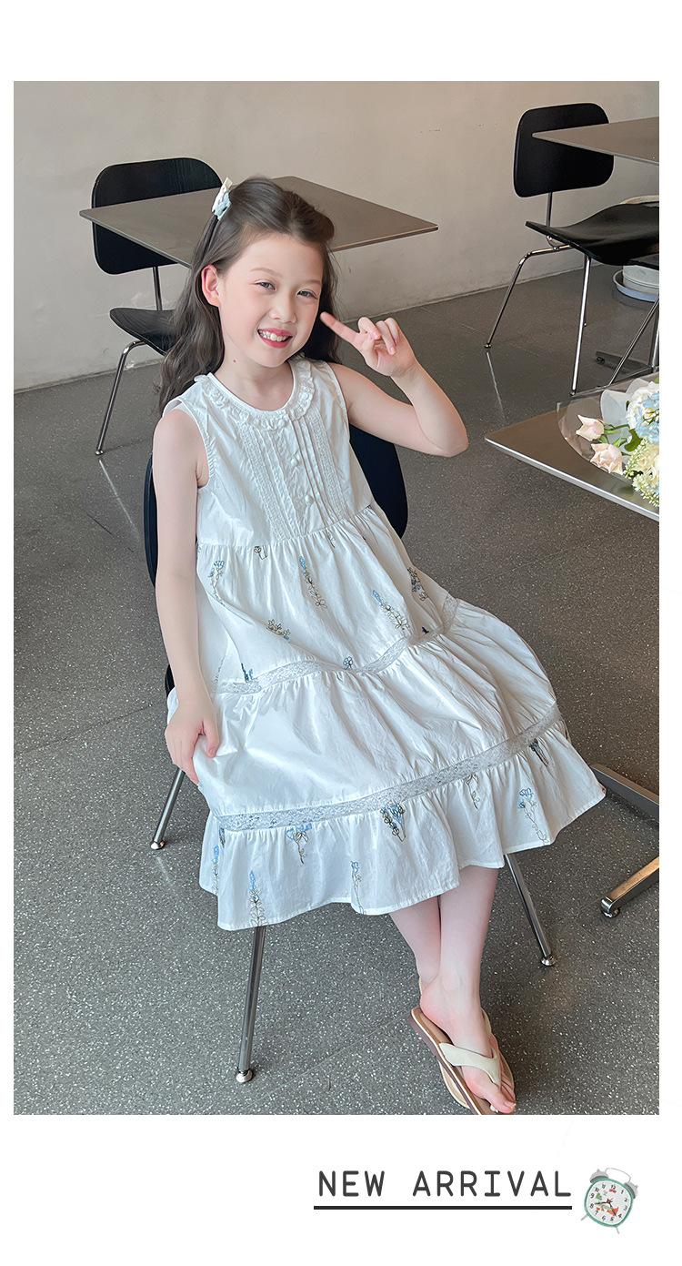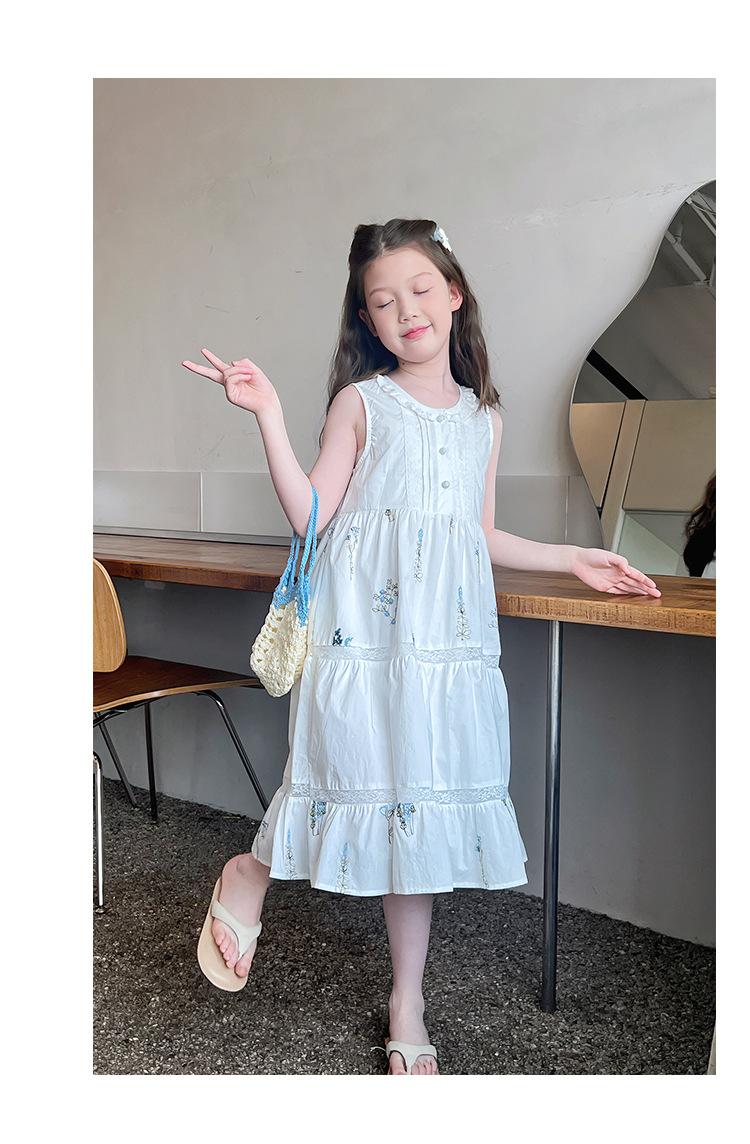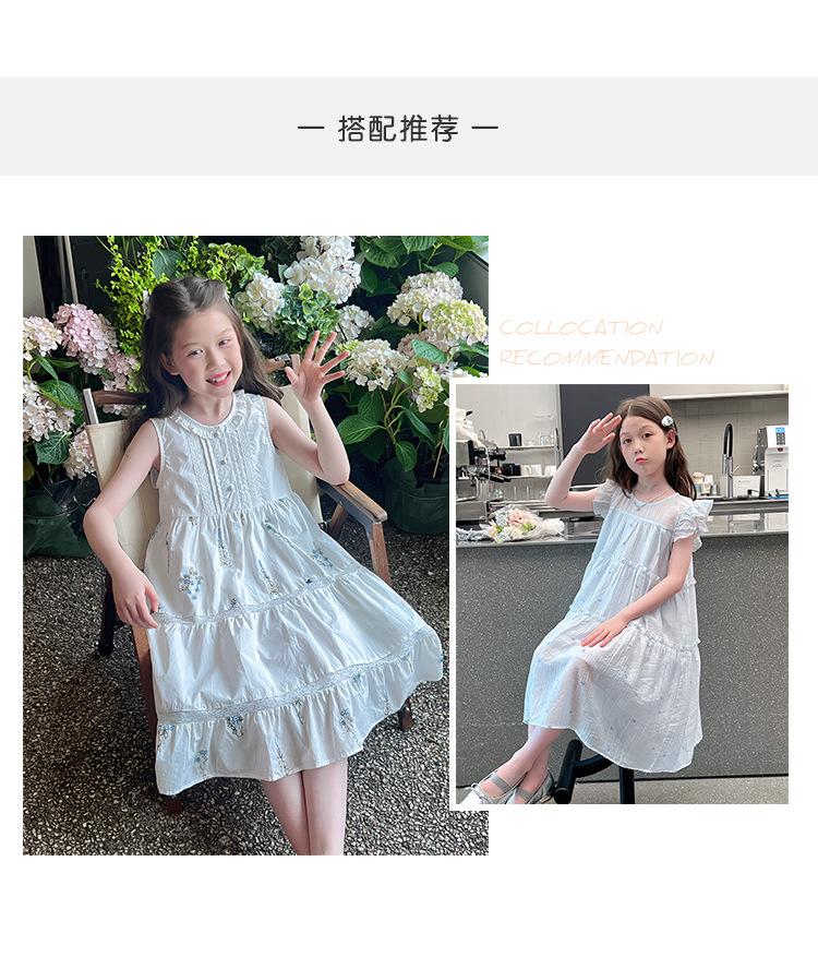 Estilo Infantil para Crianças Grandes Saia Branca com Recortes Florais Vestido de Princesa para Meninas Saia Longa Vestido Infantil Verão 2025 Novo Estilo