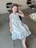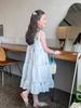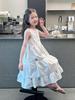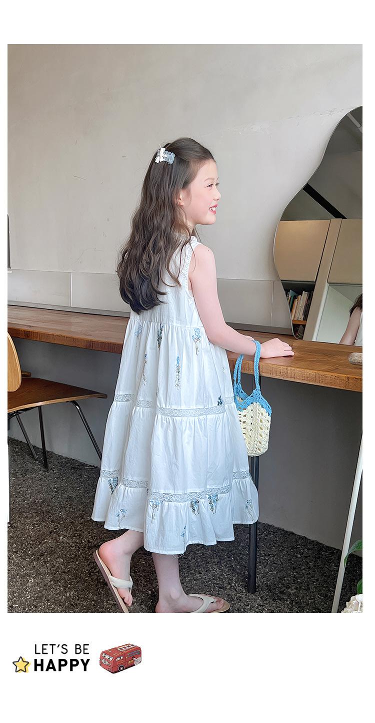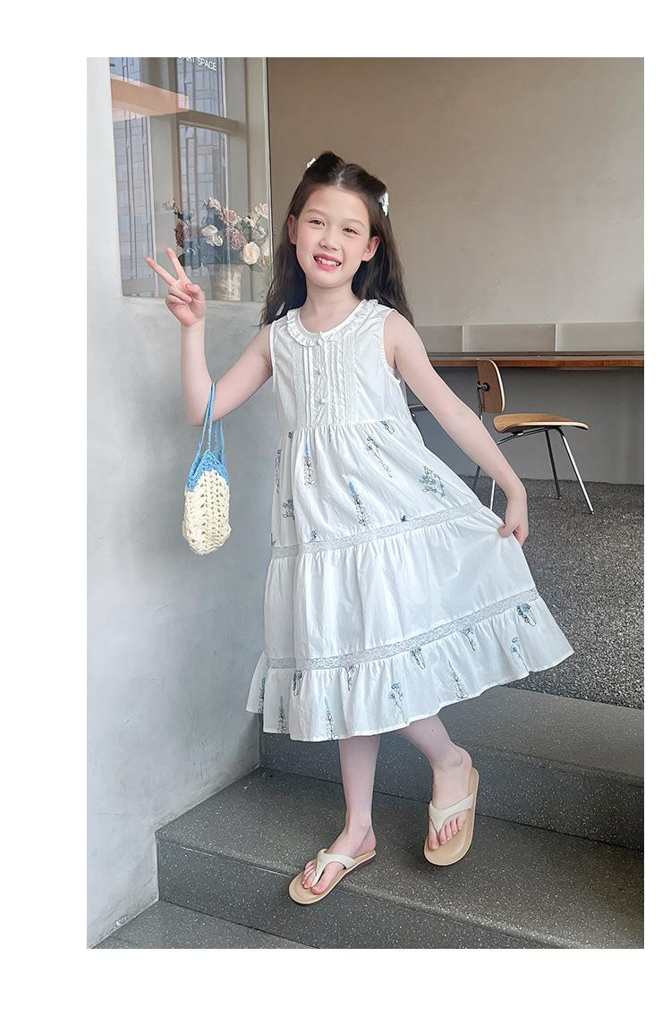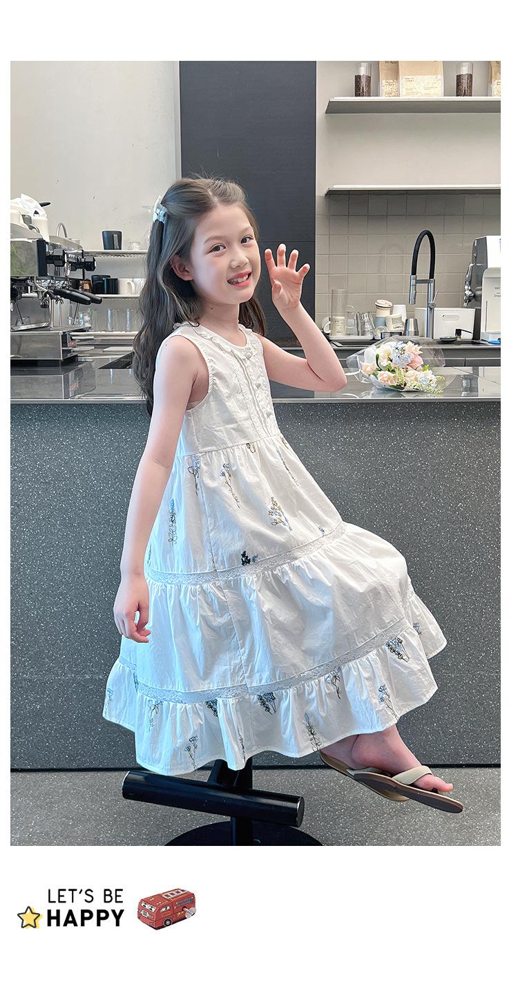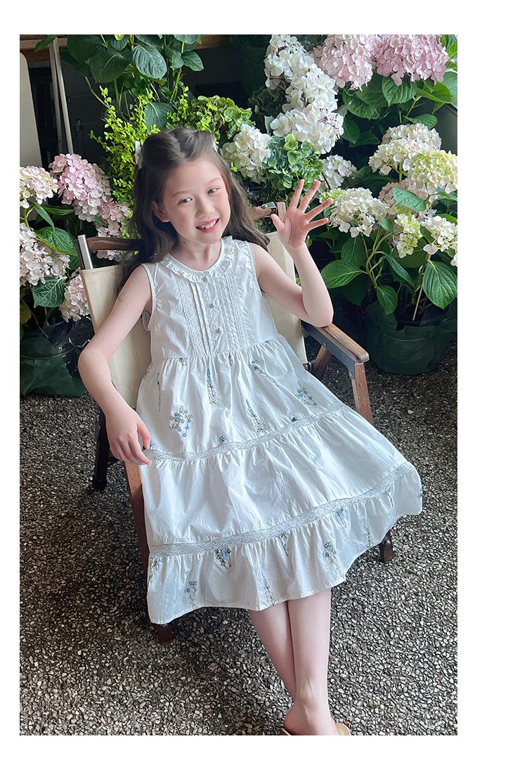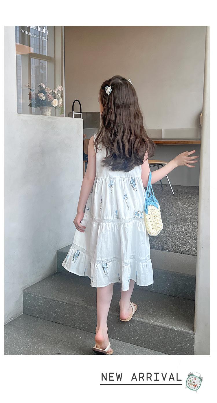 Estilo Infantil para Crianças Grandes Saia Branca com Recortes Florais Vestido de Princesa para Meninas Saia Longa Vestido Infantil Verão 2025 Novo Estilo