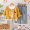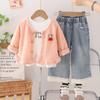 Conjunto de Primavera e Outono para Meninas 2025 Novo Conjunto de Outono para Bebê Cardigã Fashion de Manga Comprida Conjunto de Três Peças Bebê Menina Tendência