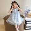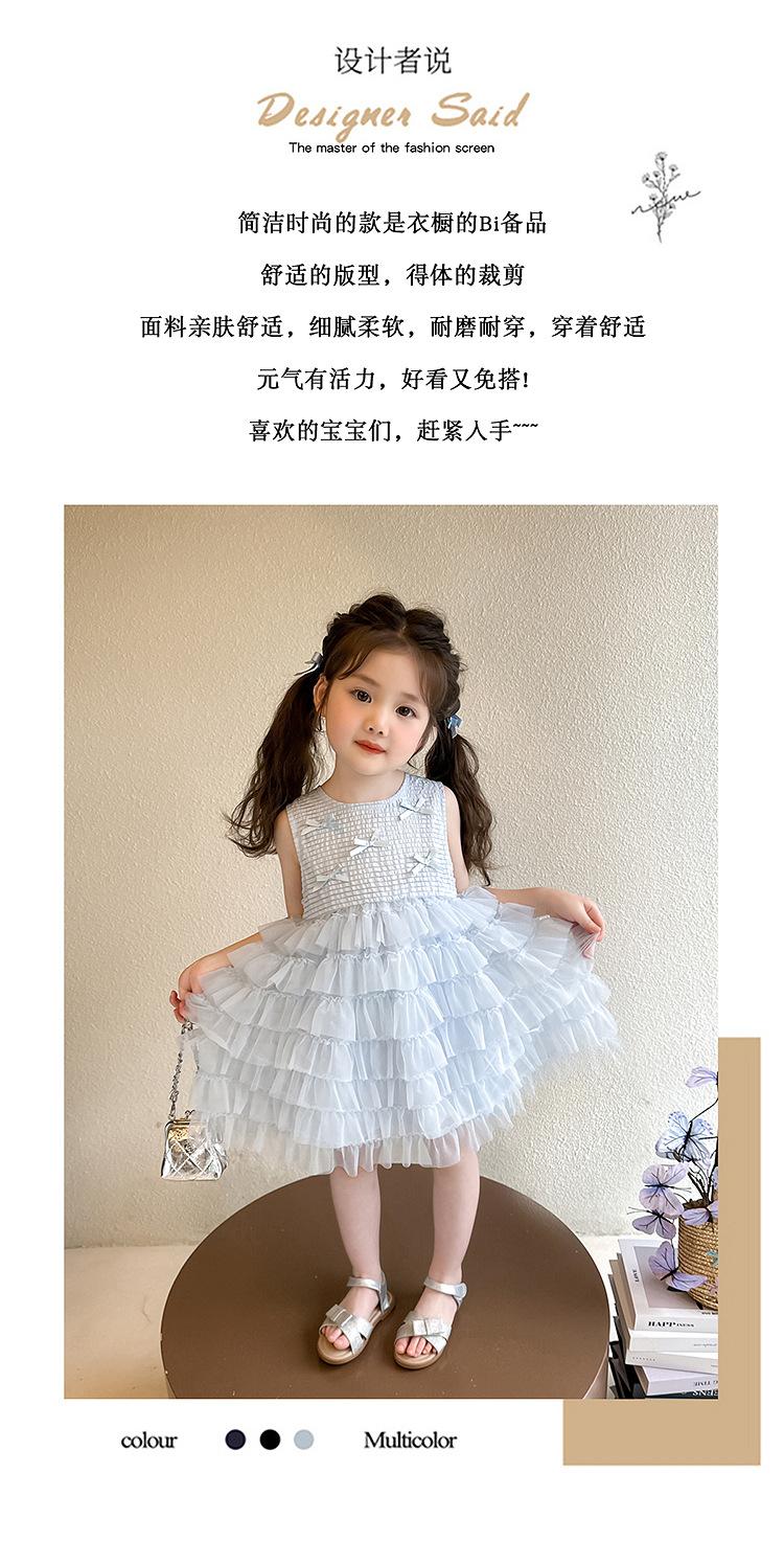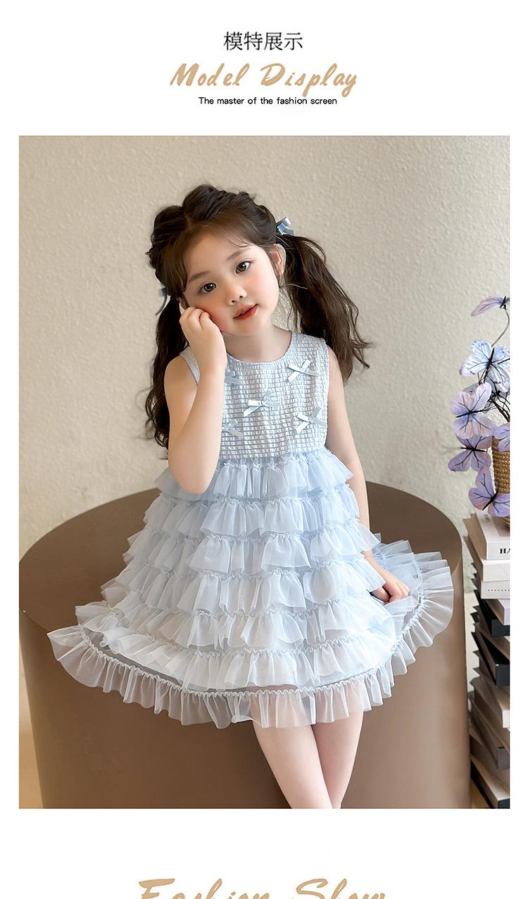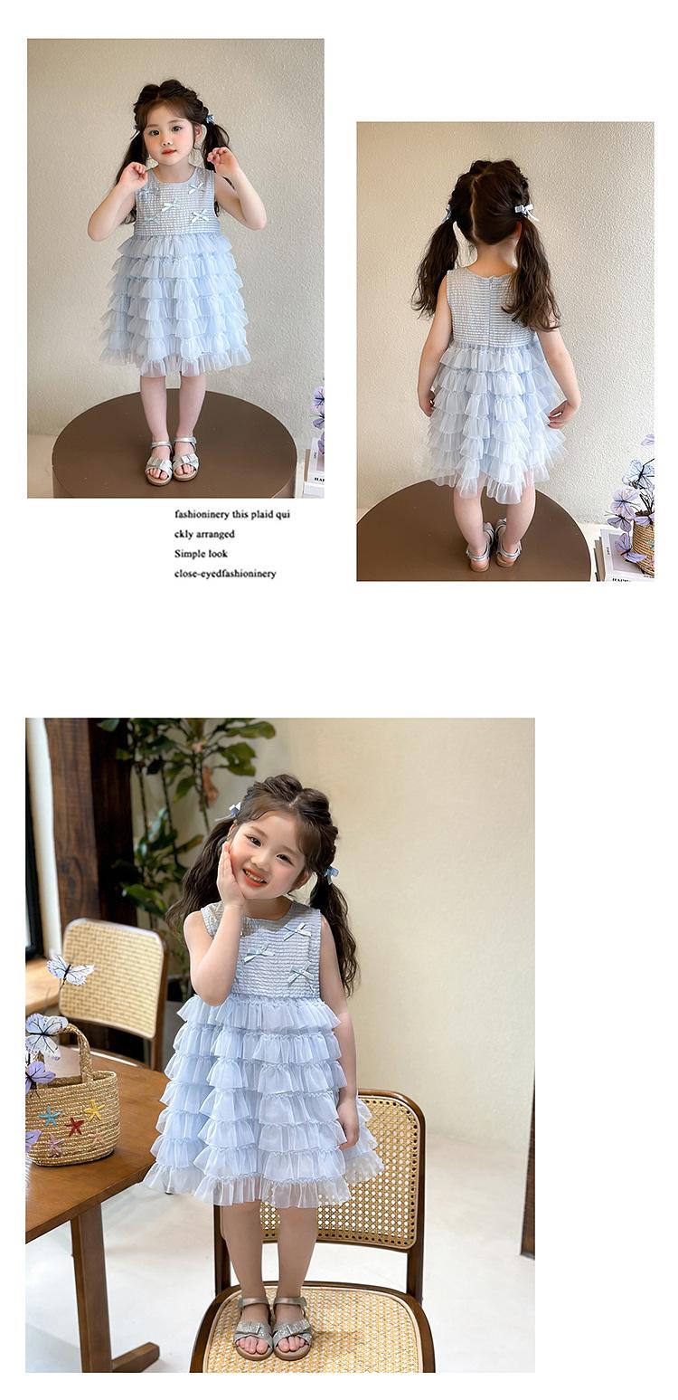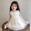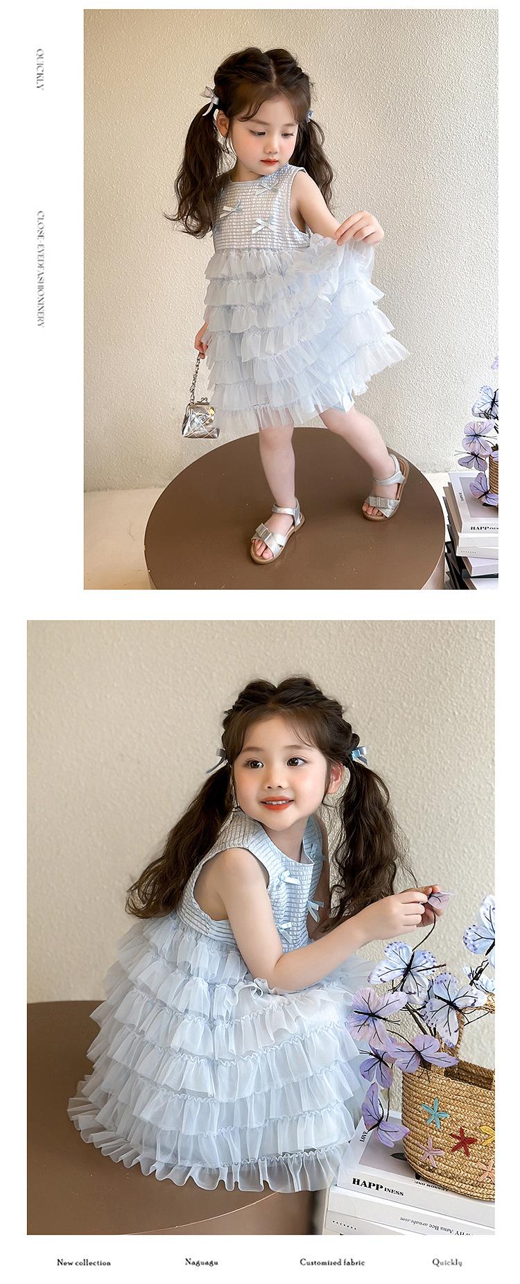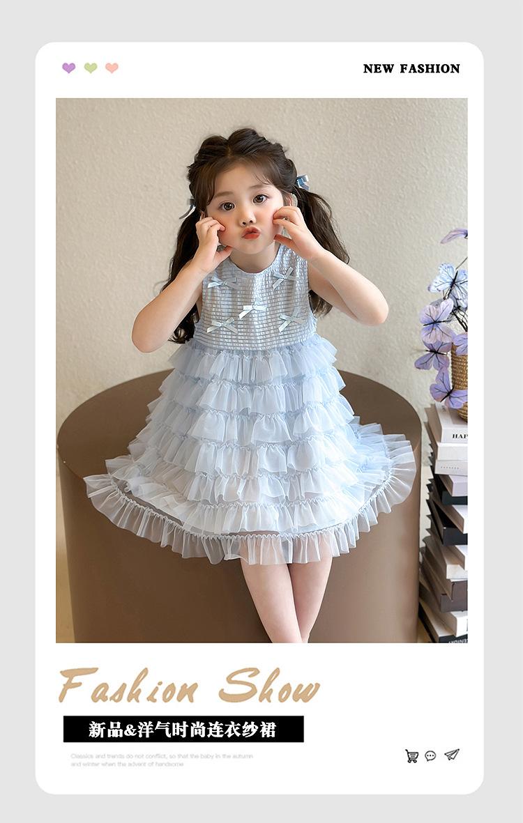 Vestido de Verão para Meninas 2025 Novo Vestido Infantil de Vestido Sem Mangas Estilo Ocidental Vestido de Princesa de Malha para Bebê