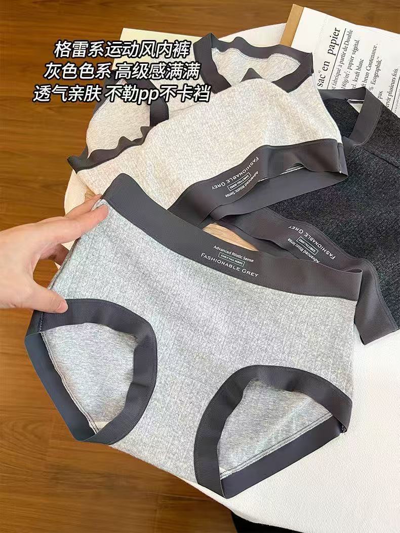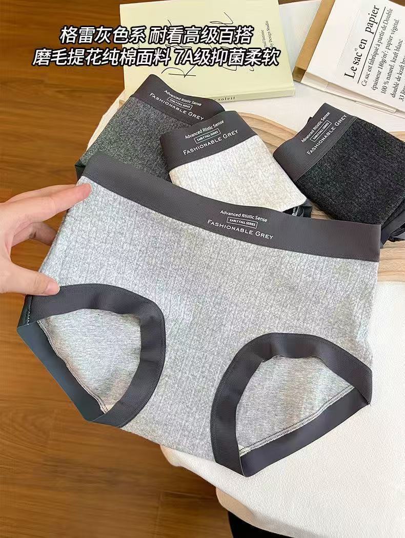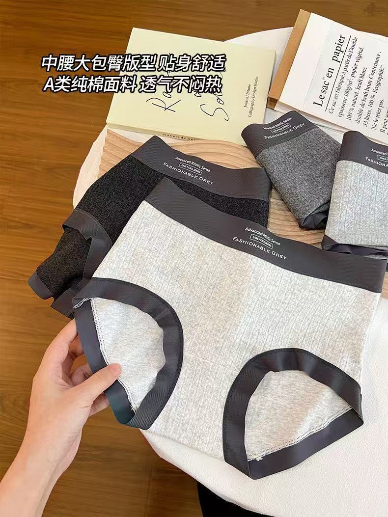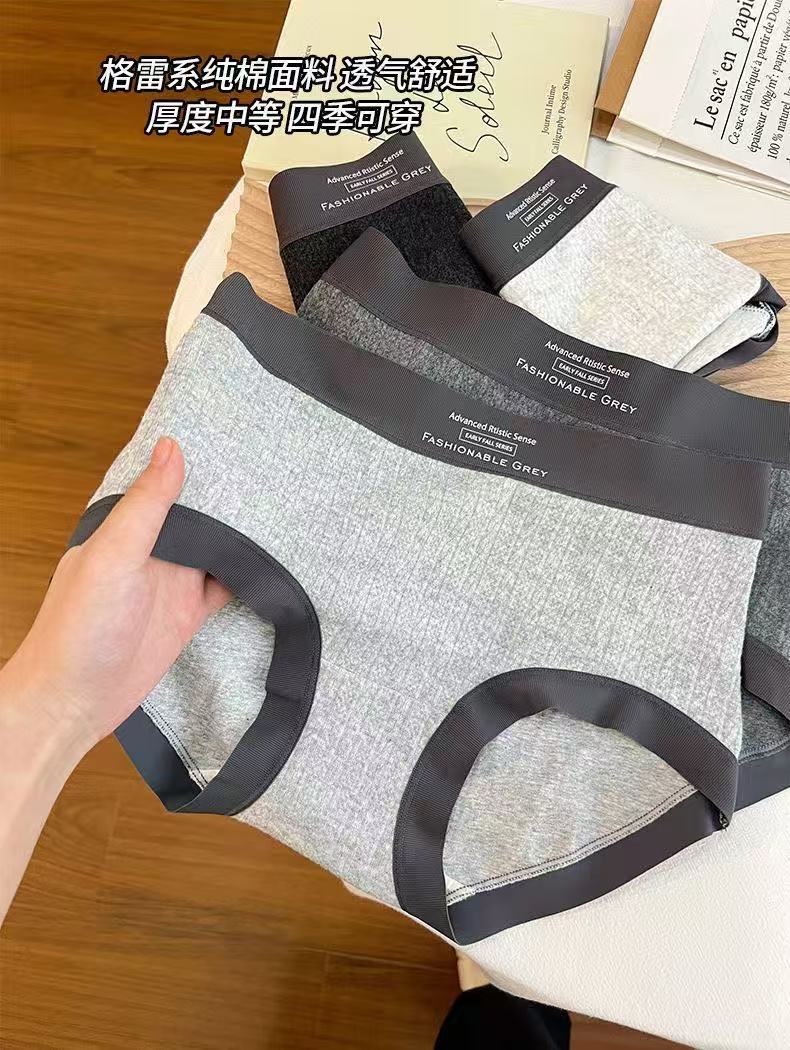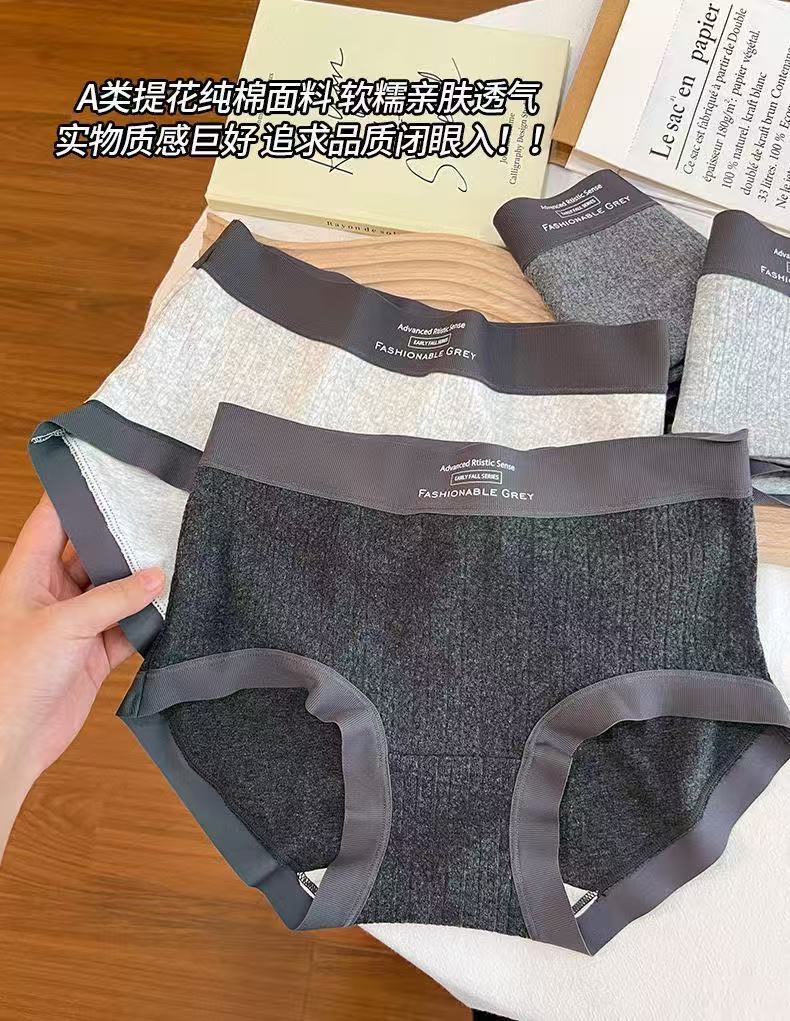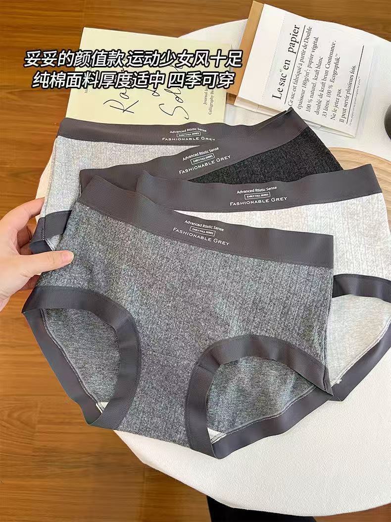 Roupa íntima feminina de algodão cinza estilo americano, cintura média, padrão escuro, jacquard, confortável, sem rastros, seda, virilha, roupa íntima
