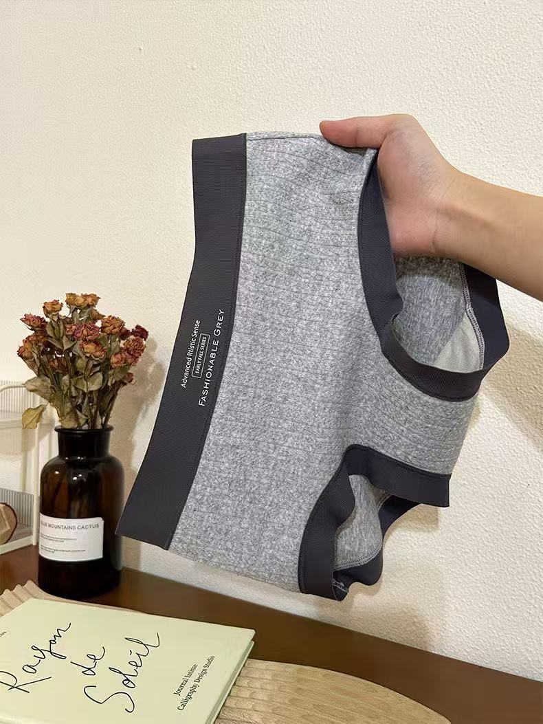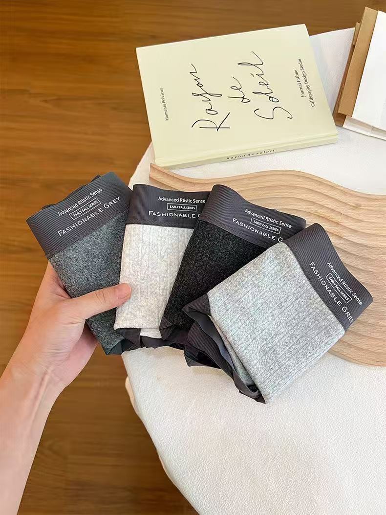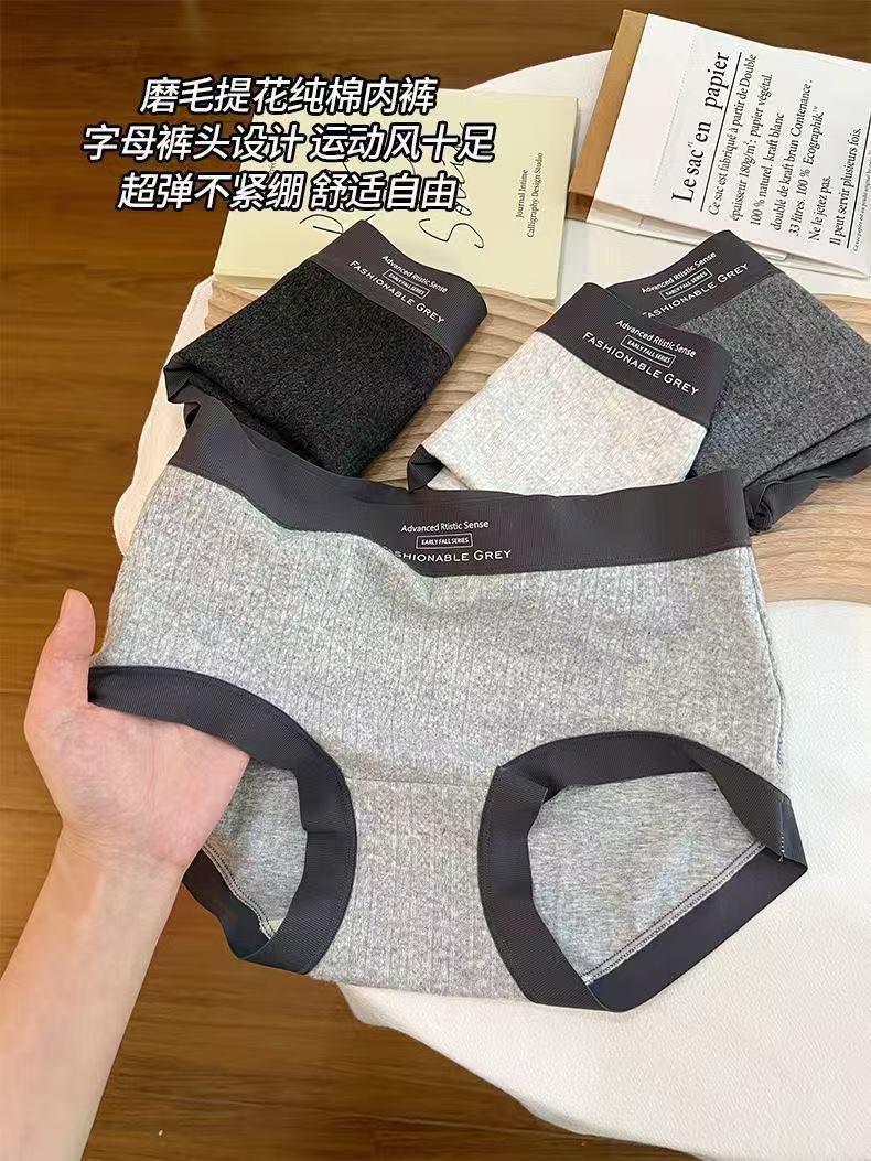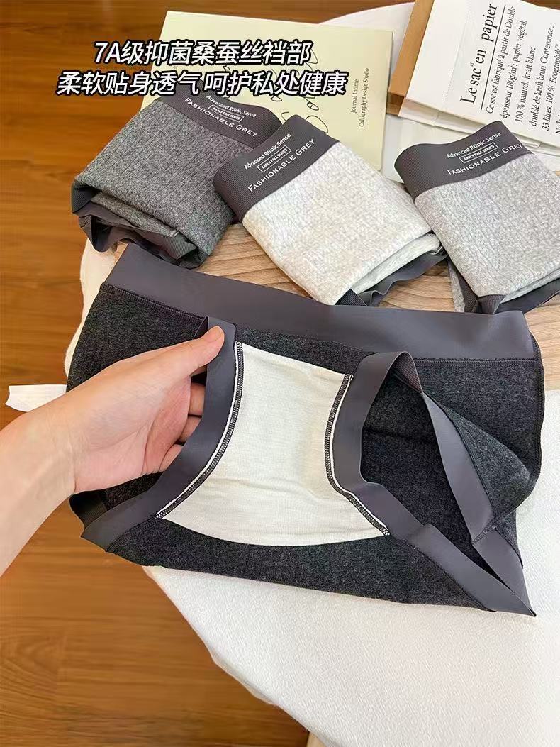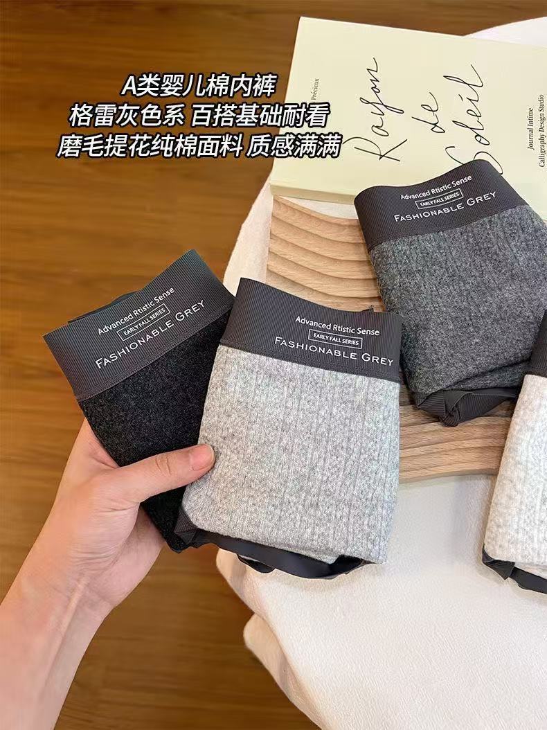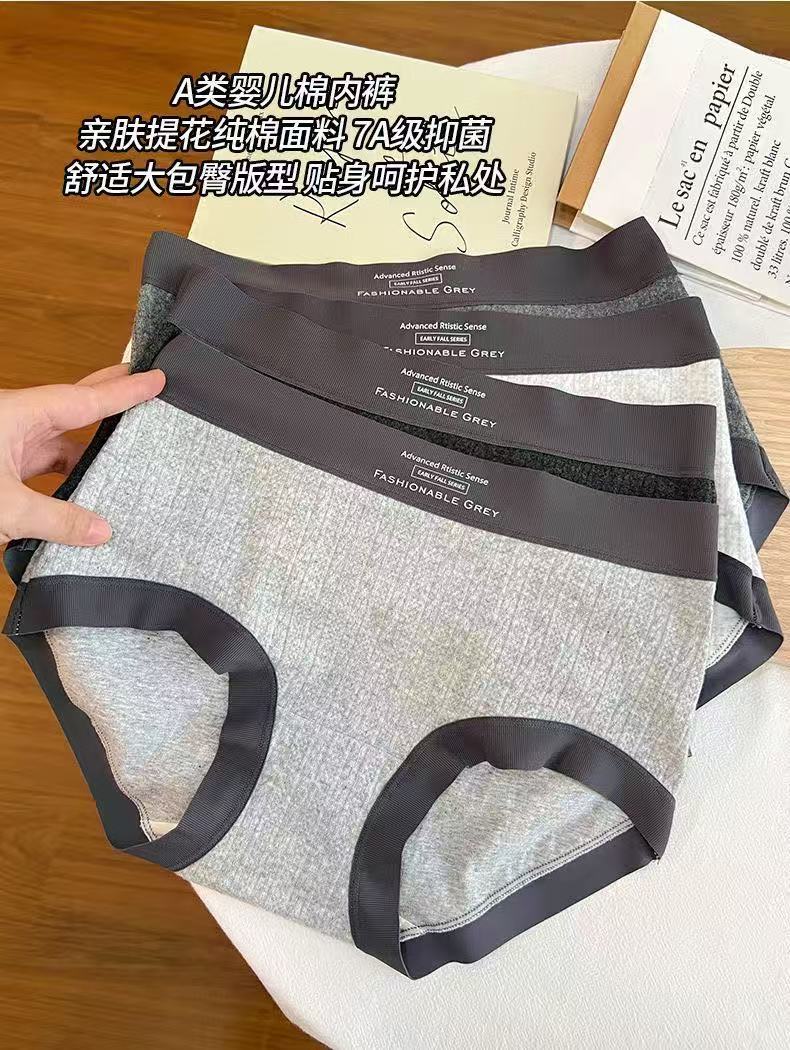Roupa íntima feminina de algodão cinza estilo americano, cintura média, padrão escuro, jacquard, confortável, sem rastros, seda, virilha, roupa íntima