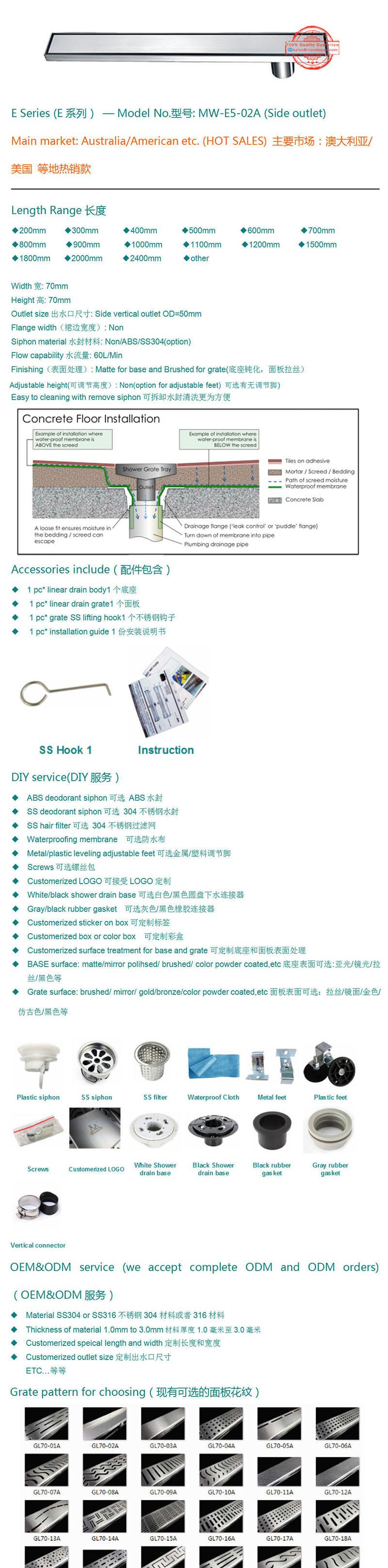 Ralo de piso desodorizador de aço inoxidável 304 para banheiro, máquina de lavar roupa, ralo de piso de água E5-02A, variedade de estilos, fornecimento