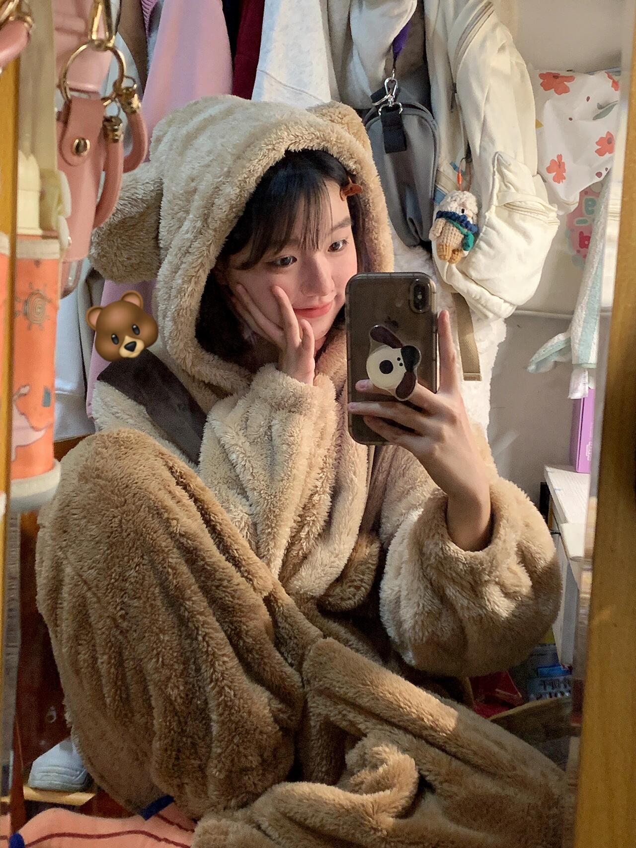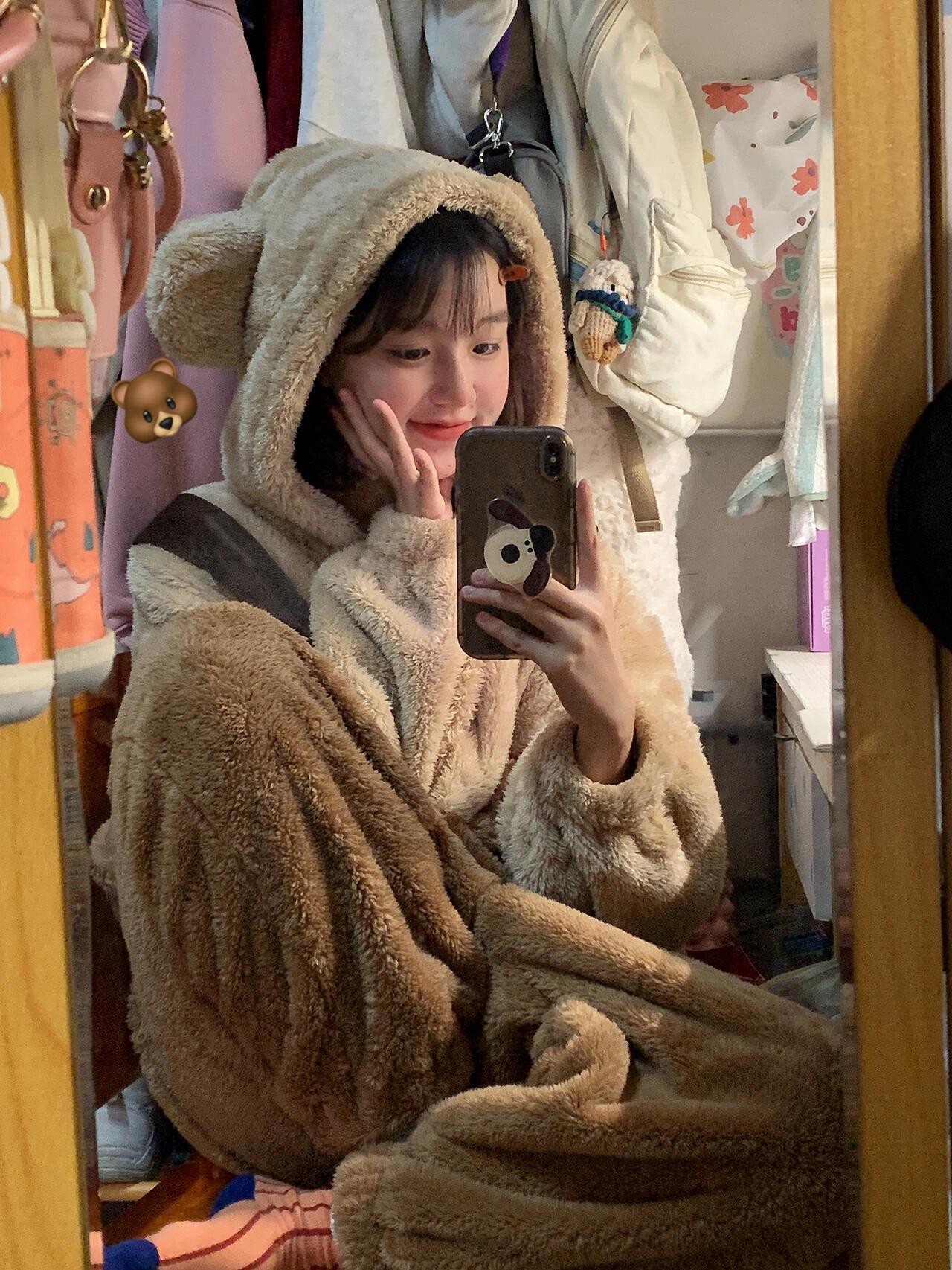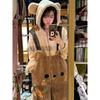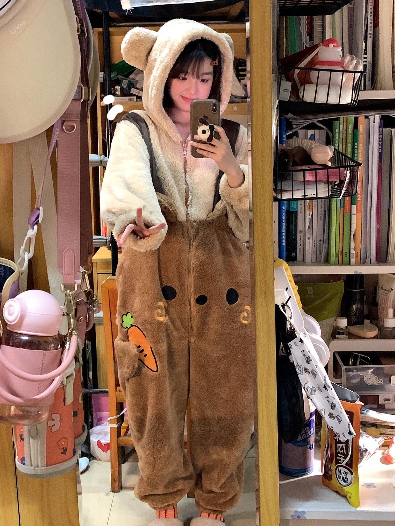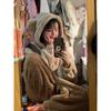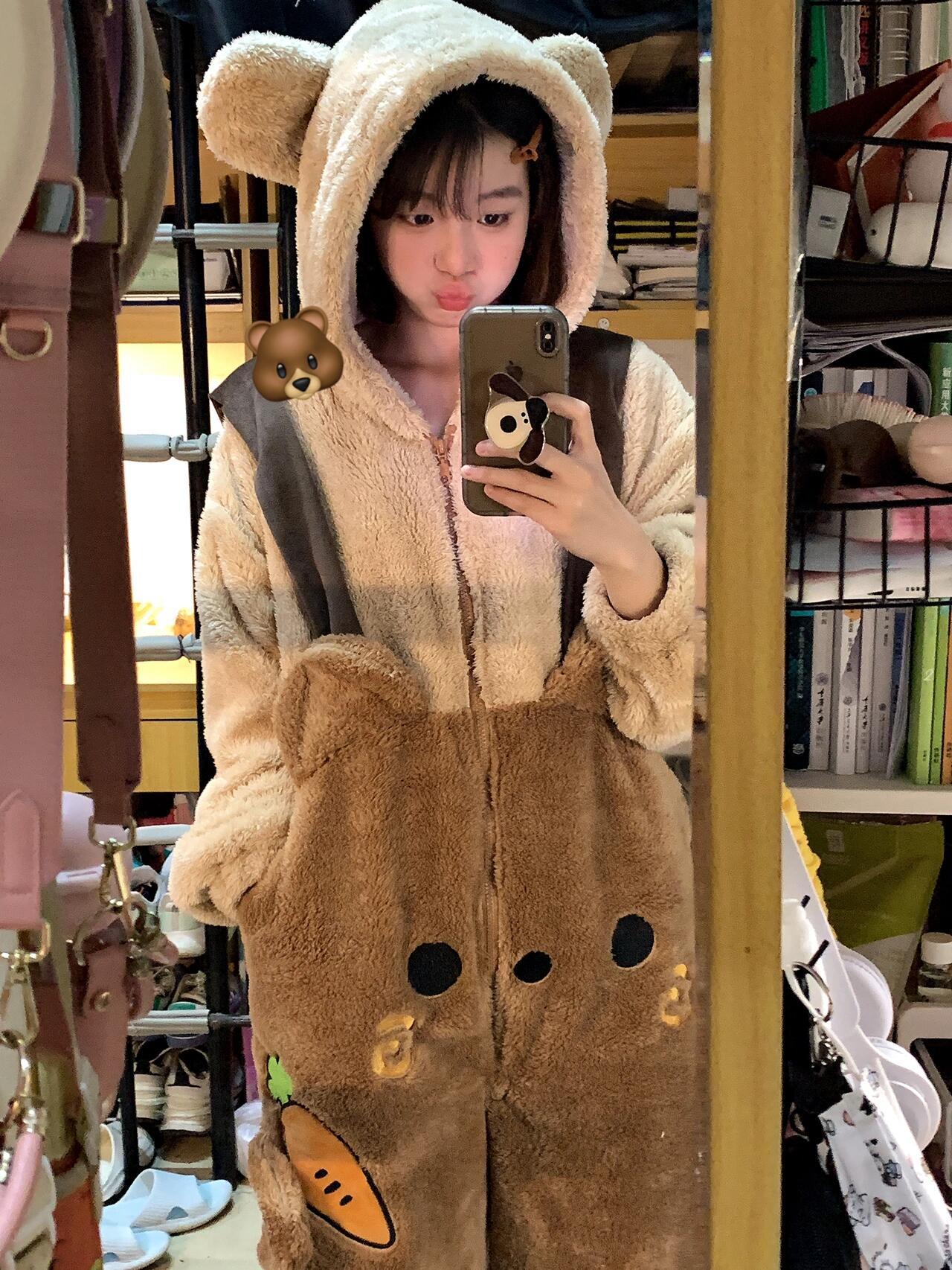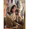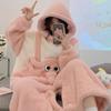Pijama Macacão Feminino Inverno Novo de Pelúcia Coral com Capuz Urso Fofo Desenho Animado Tamanho Plus Roupas de Casa