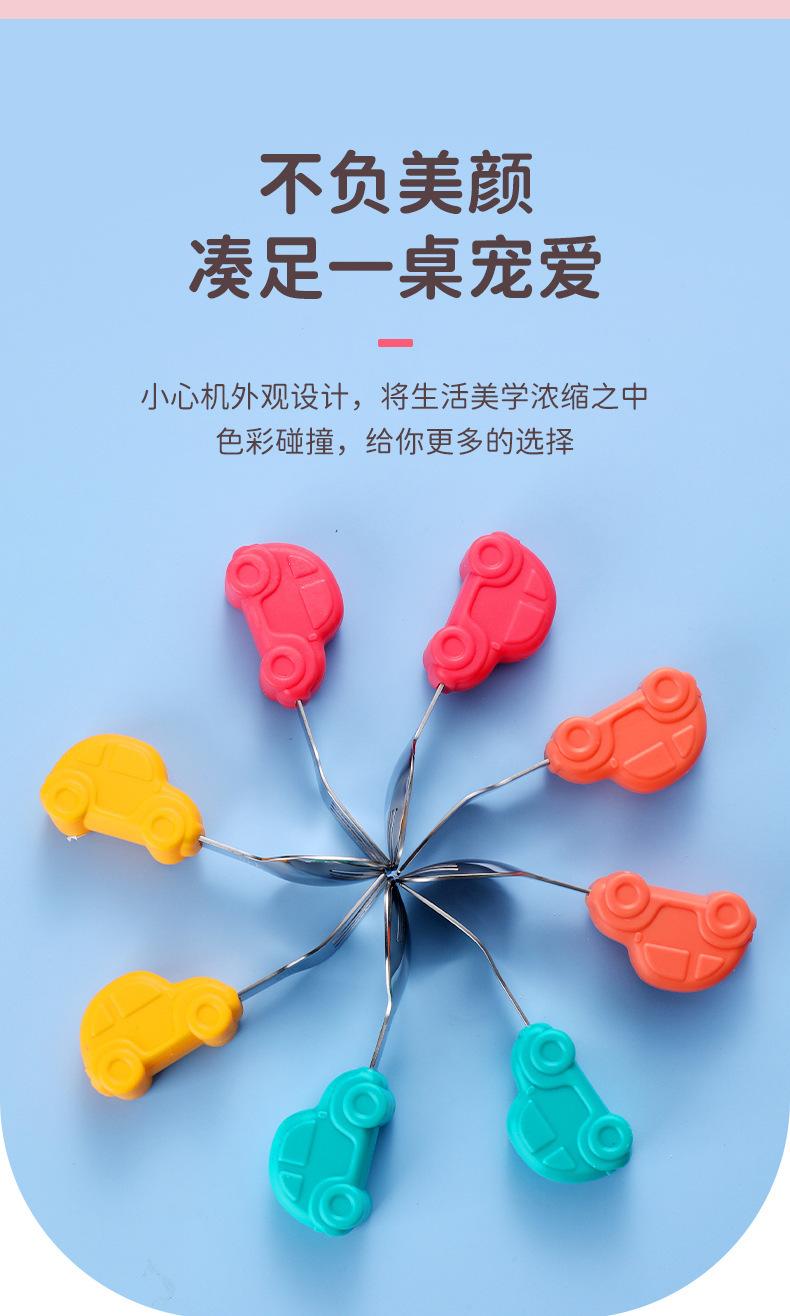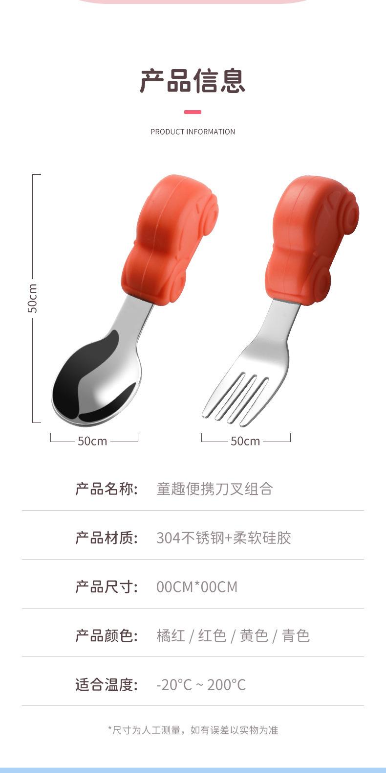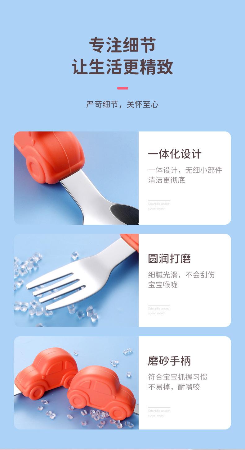 Bebê comendo colher punho curto aço inoxidável carro silicone garfo colher de treinamento do bebê louça de mesa de alimentação suplementar das crianças pacote de colher de alimento suplementar
