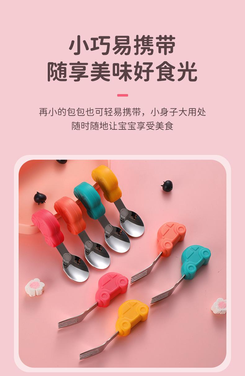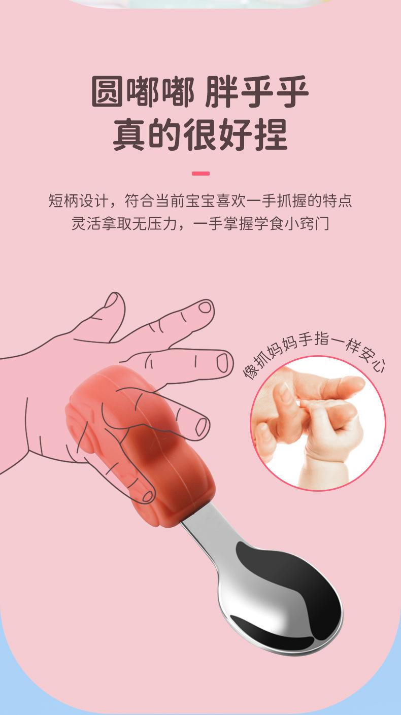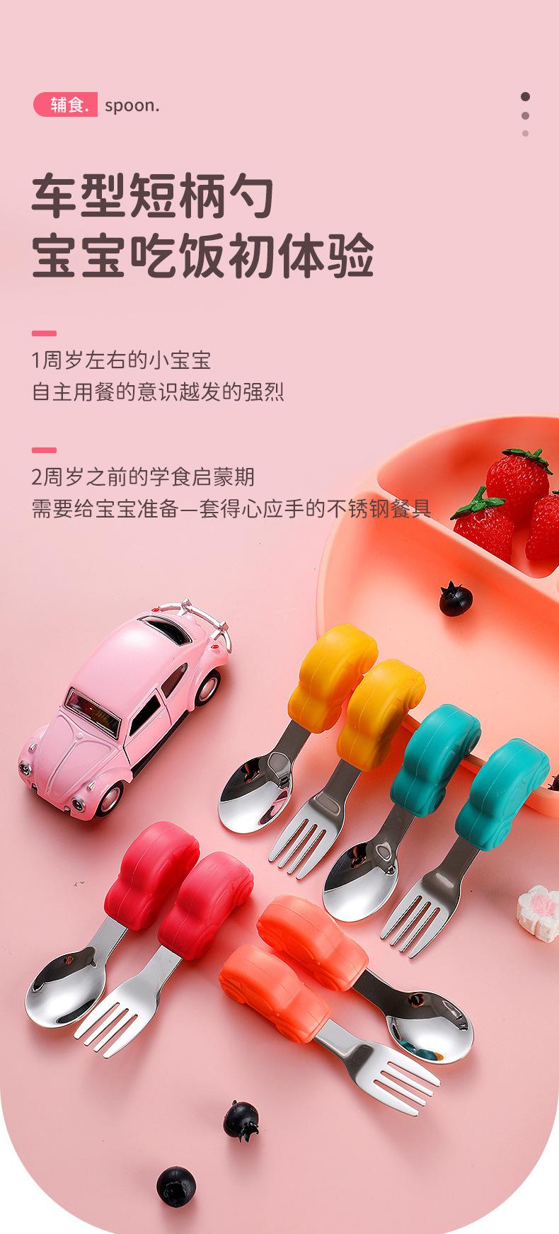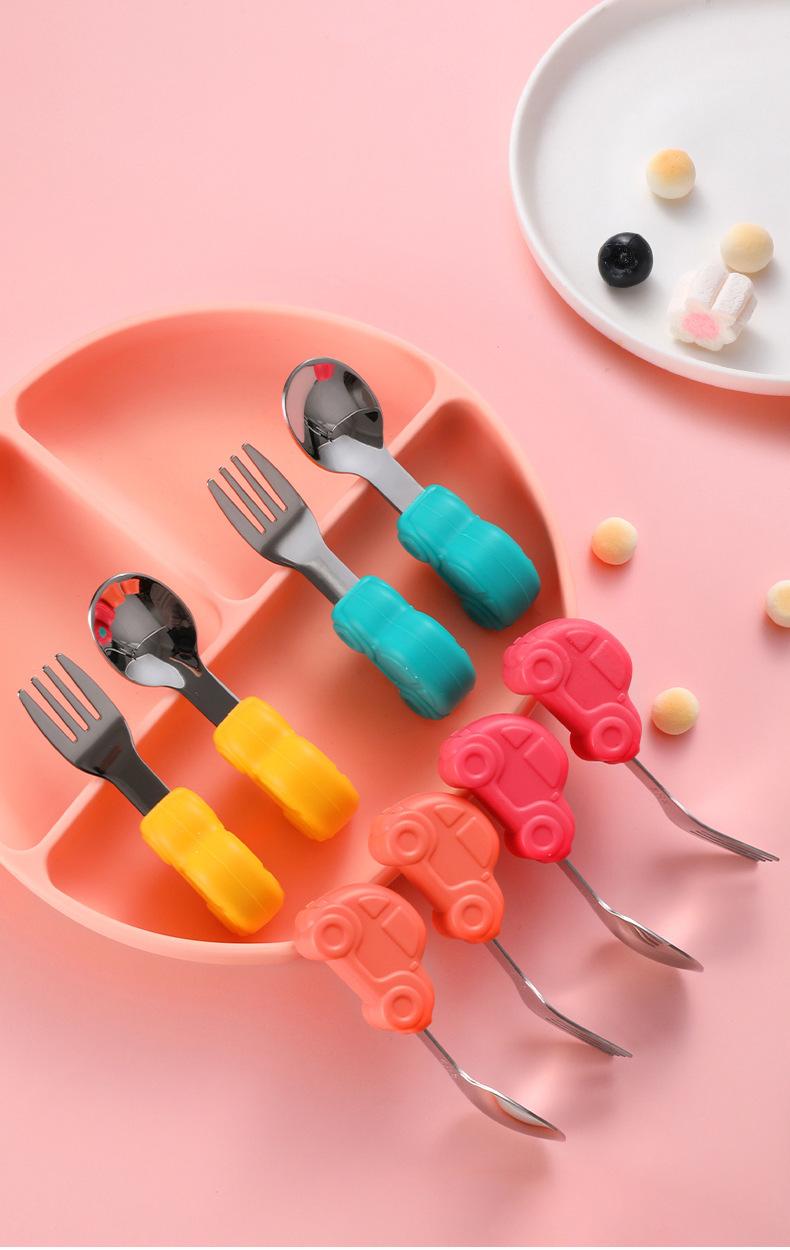 Compre Bebê comendo colher punho curto aço inoxidável carro silicone garfo colher de treinamento do bebê louça de mesa de alimentação suplementar das crianças pacote de colher de alimento suplementar no atacado no Joom.pro