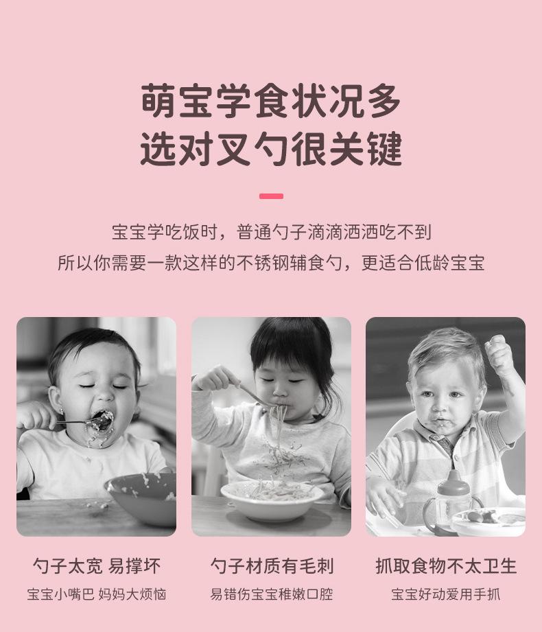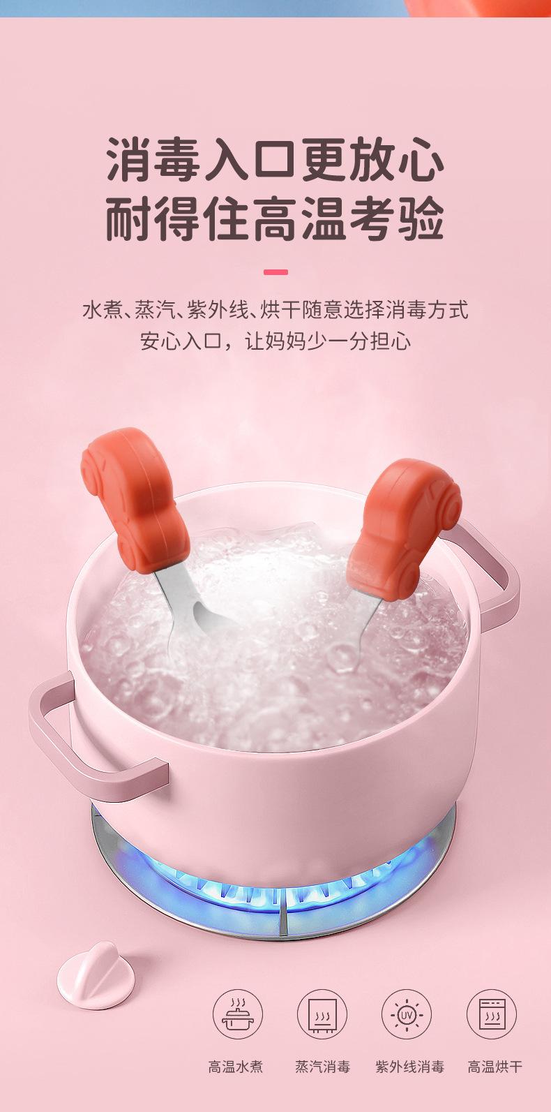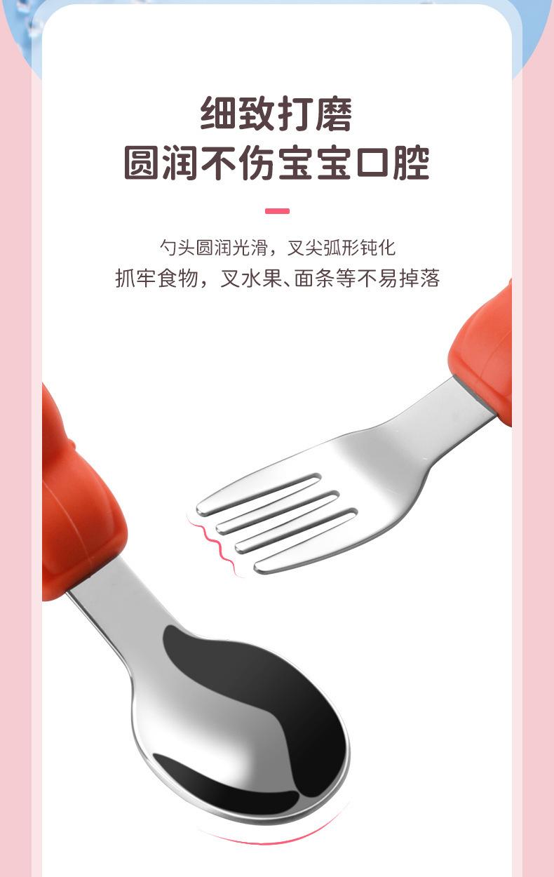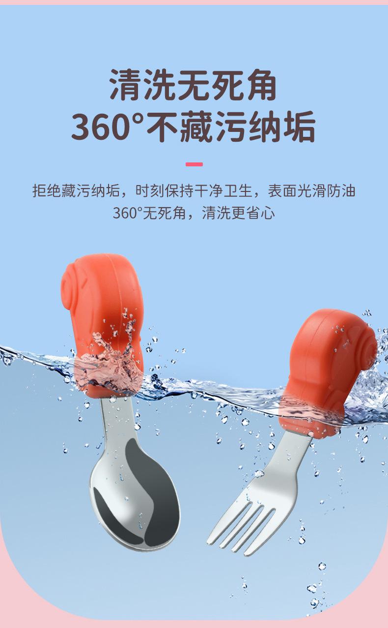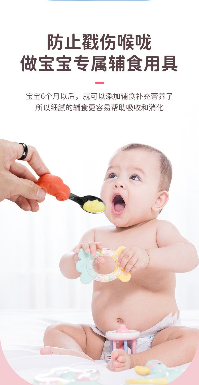 Compre Bebê comendo colher punho curto aço inoxidável carro silicone garfo colher de treinamento do bebê louça de mesa de alimentação suplementar das crianças pacote de colher de alimento suplementar no atacado no Joom.pro