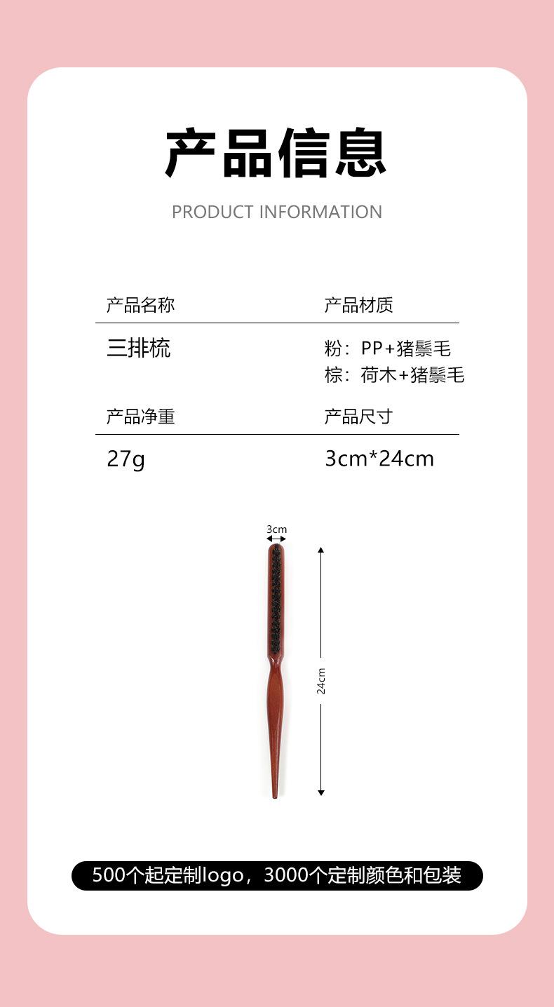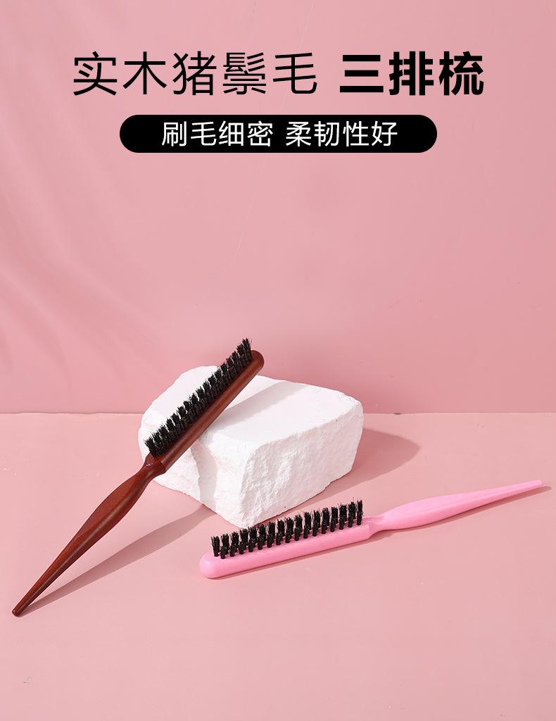 Pente de cabeleireiro de três fileiras pente de modelagem de crina de porco fofa pente ponta-cauda pente de três fileiras cabelo pente para modelar cabelo