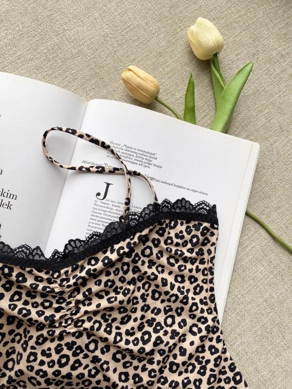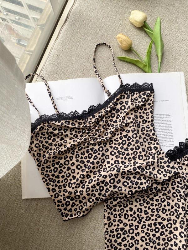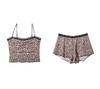 Nova Lingerie Sexy Estilo Pijama Estampa de Leopardo Macia Sedosa Pode Ser Usada Fora Conjunto Camisola Regata Shorts para Casa Verão