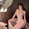 Black【Top+T-back+Garter leg ring】, Pink【Top+T-back+Garter leg ring】, Black + black edge stockings, Pink + white trim stockings