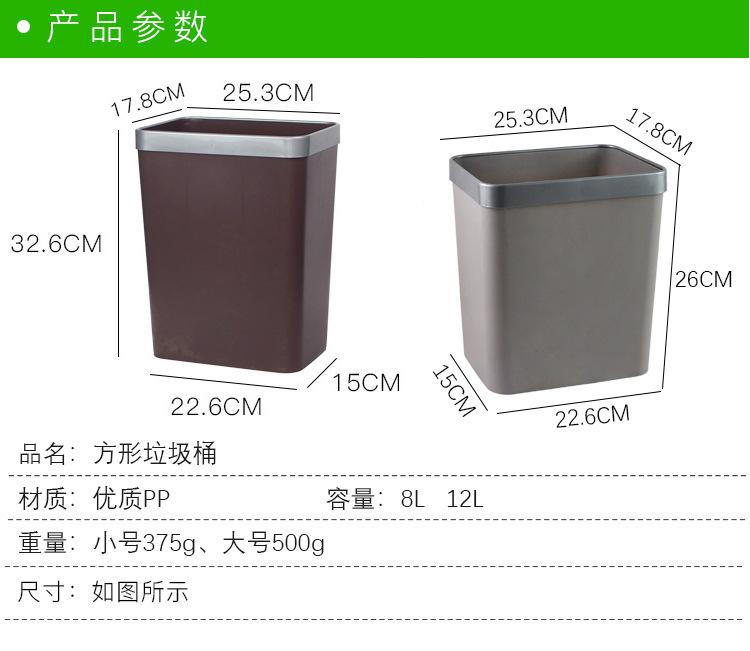 Lixeira Quadrada Sem Tampa com Anel de Pressão para Casa Sala de Estar Grande Cozinha Vaso Sanitário Banheiro Criativo Simples Classificação