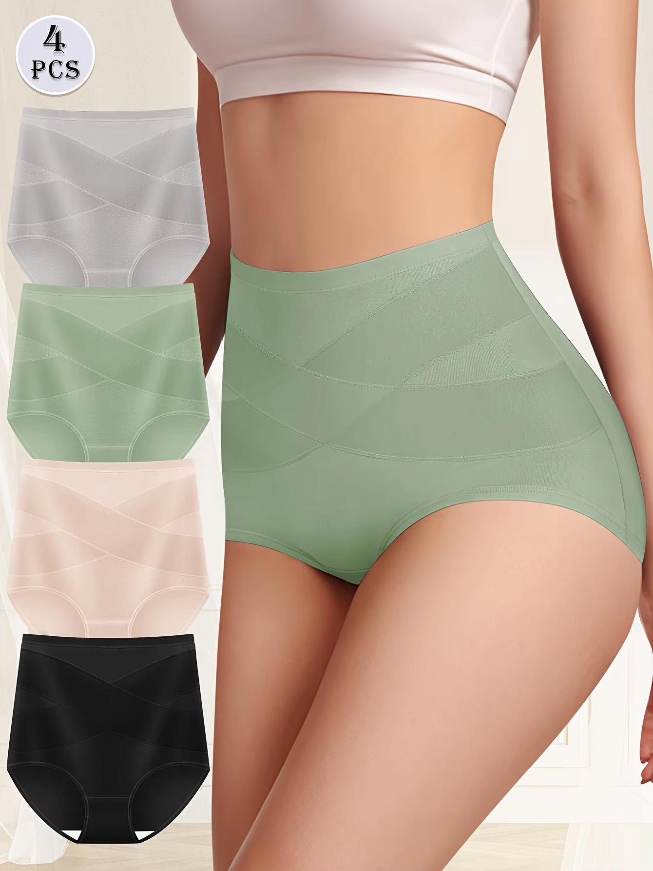 [Geração Armazém no Exterior] 4 peças Cueca Algodão Cintura Alta Mais Vendida na Amazon Calcinha Feminina Leve para Quadril e Abdômen