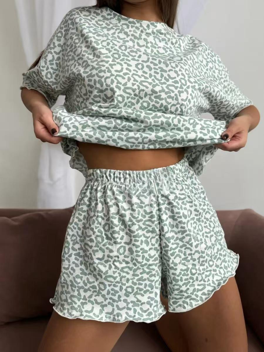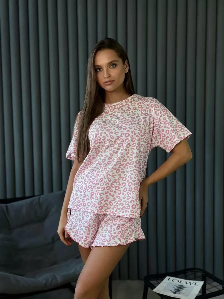 25 Pijamas Femininos Russos Transfronteiriços Estilo Quente Roupa de Dormir Feminina Estampa de Leopardo