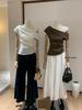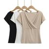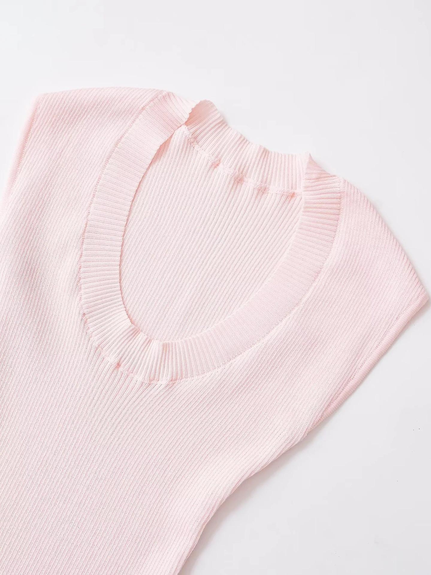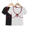 25 Novo Sexy Quente Menina Decote Baixo Manga Curta Tricô Fino Verão Menina Quente Emagrecendo e Ajustado ao Corpo Camiseta
