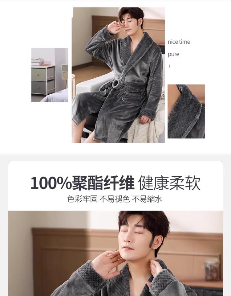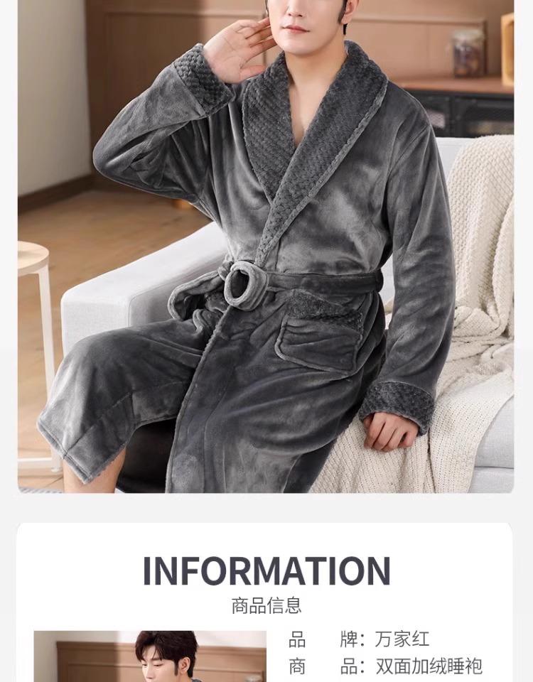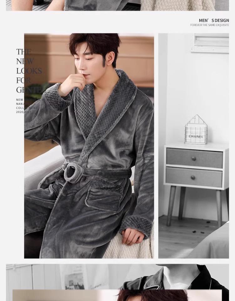 Compre Camisola Masculina de Lã de Coral Pijama forrado a lã Roupão Espesso Flanela Solto Roupa de Casa Extra Longo Quente Roupão de Manhã no atacado no Joom.pro