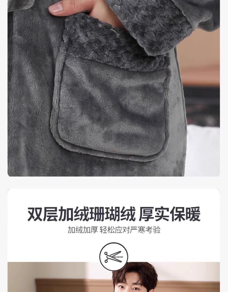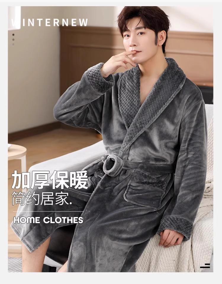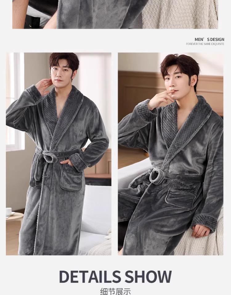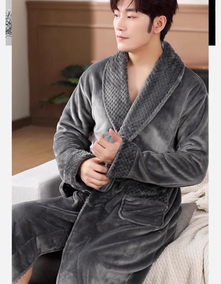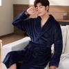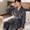 Camisola Masculina de Lã de Coral Pijama forrado a lã Roupão Espesso Flanela Solto Roupa de Casa Extra Longo Quente Roupão de Manhã