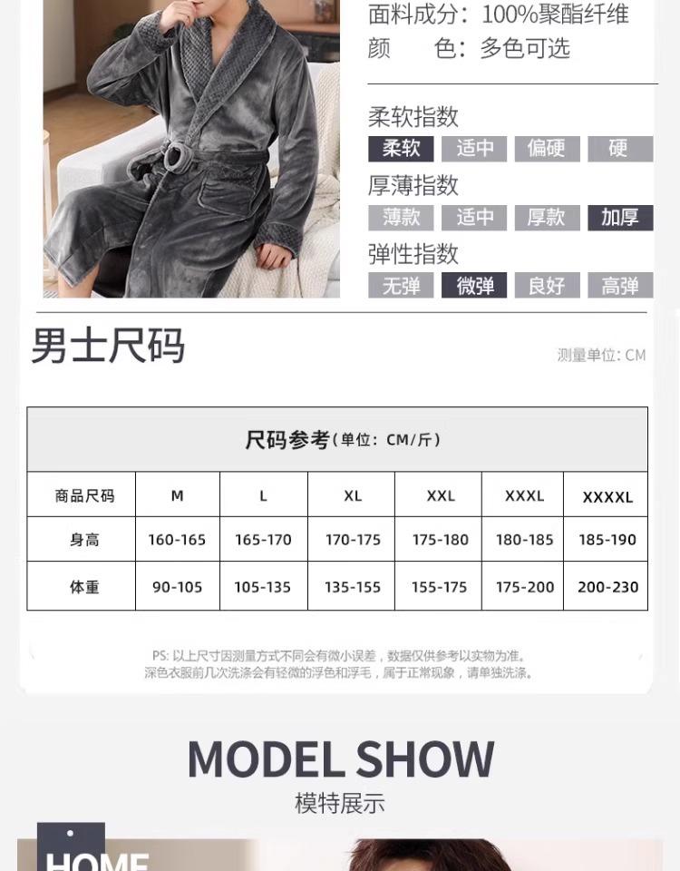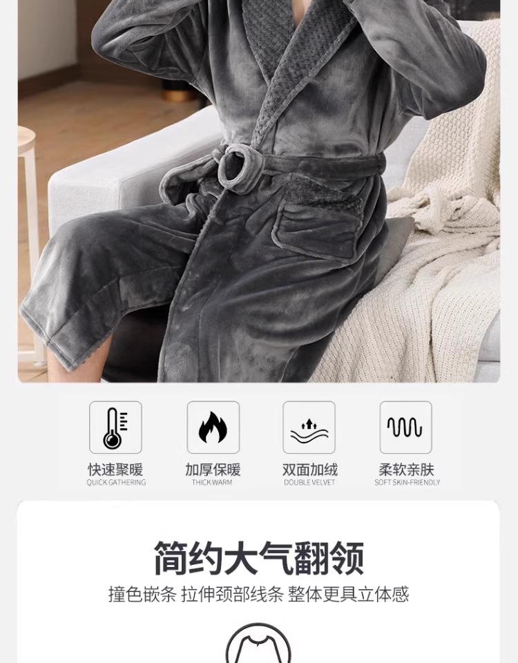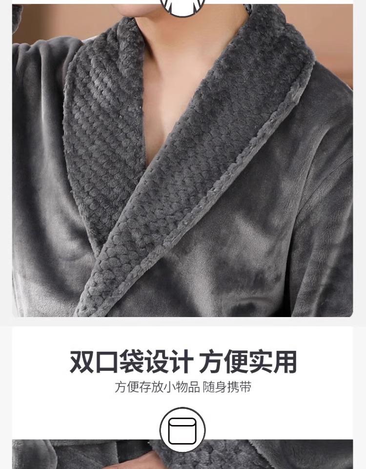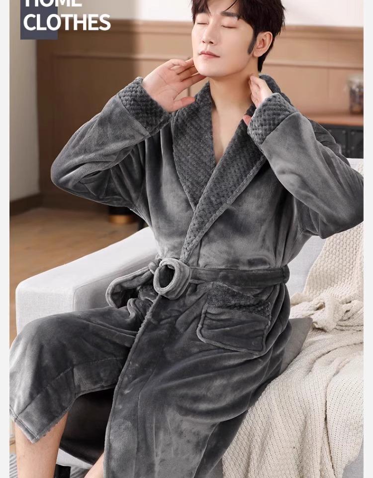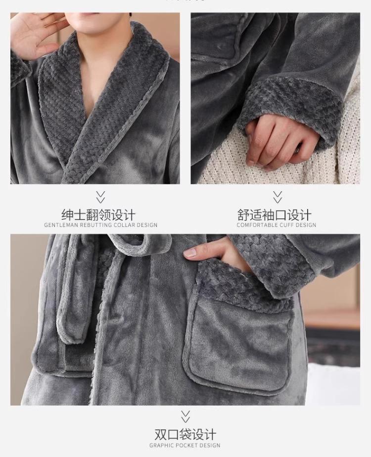 Camisola Masculina de Lã de Coral Pijama forrado a lã Roupão Espesso Flanela Solto Roupa de Casa Extra Longo Quente Roupão de Manhã
