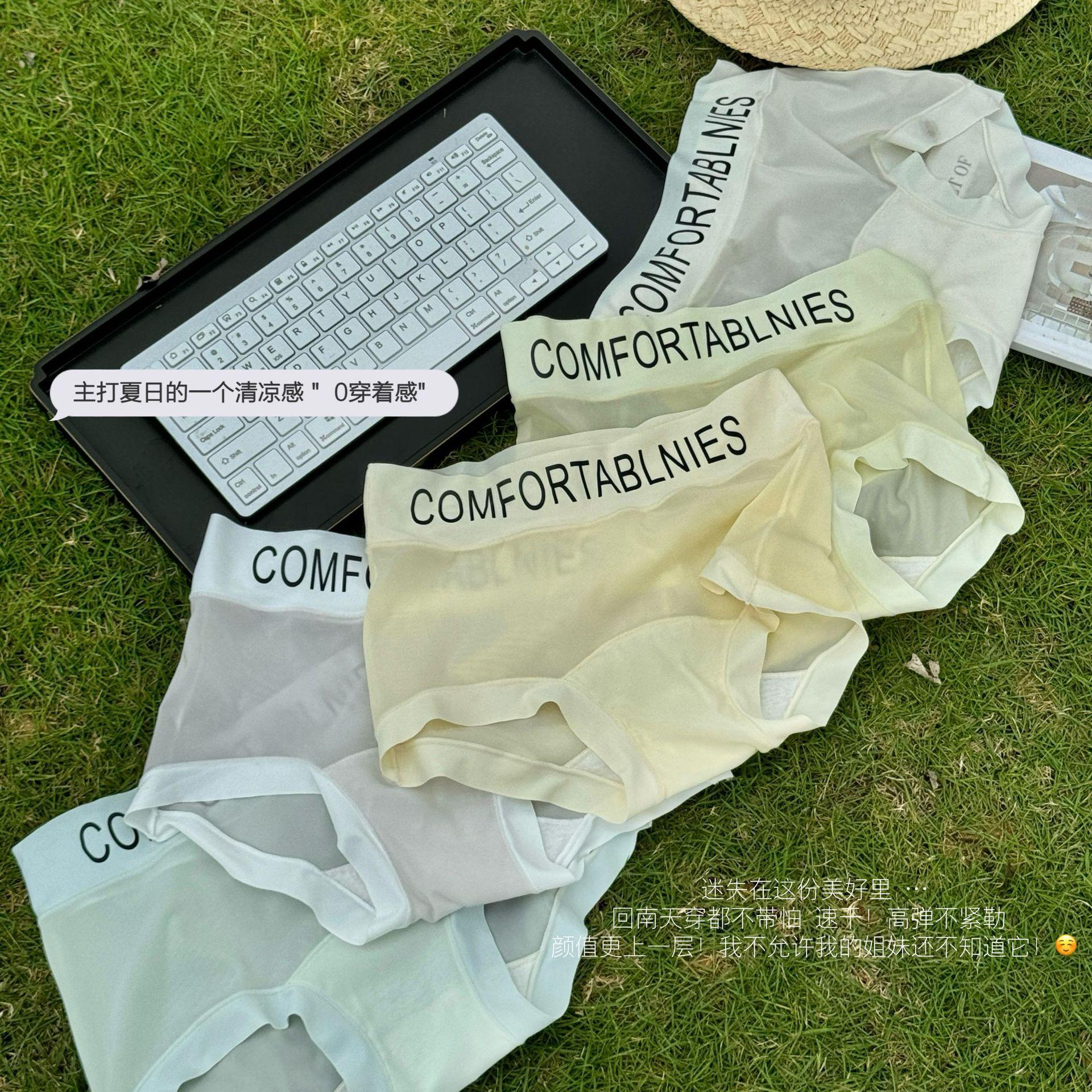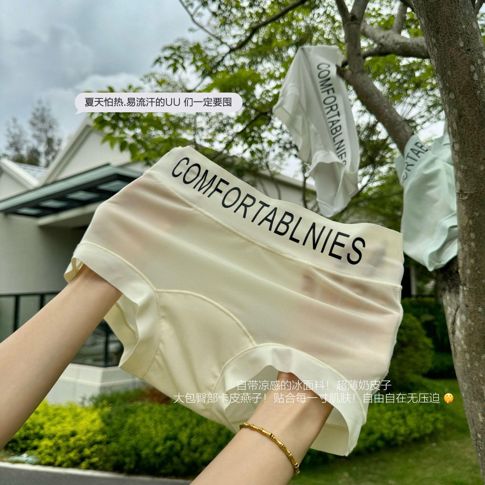 Nova Moda Carta Cueca Sem Costura de Seda Gelo para Meninas Verão Fina Cintura Média Respirável Virilha Antibacteriana Calcinha para Meninas