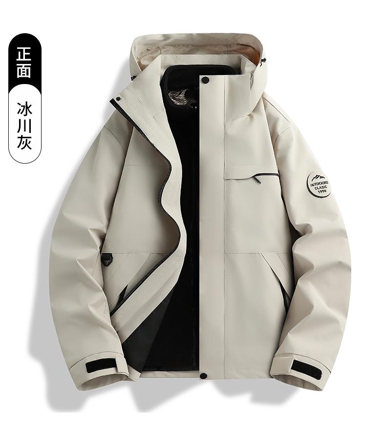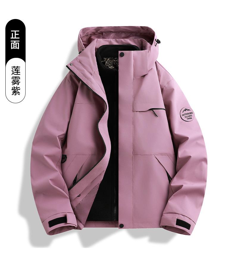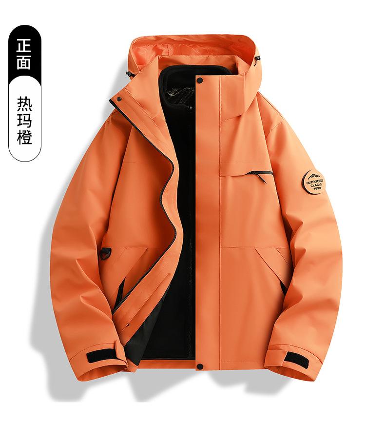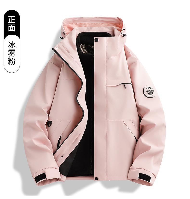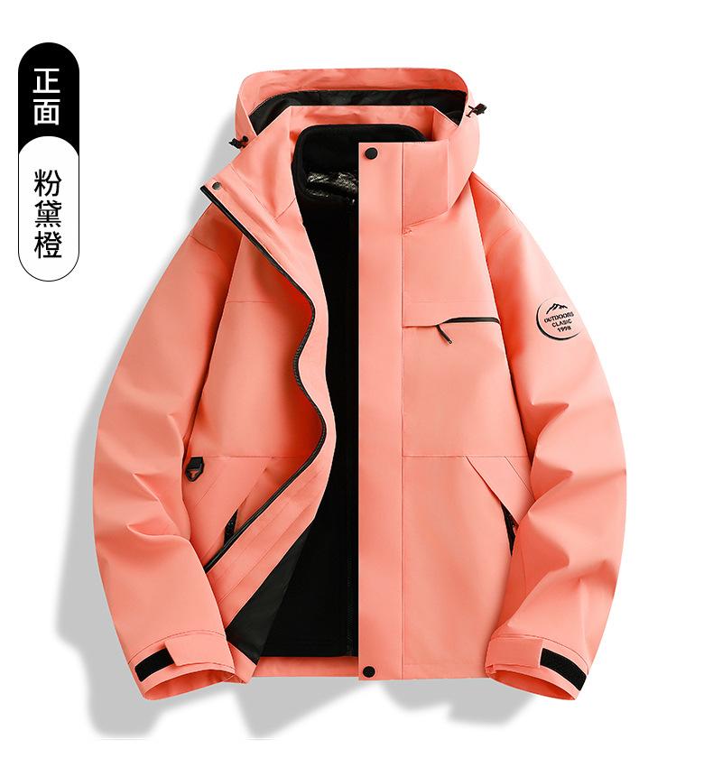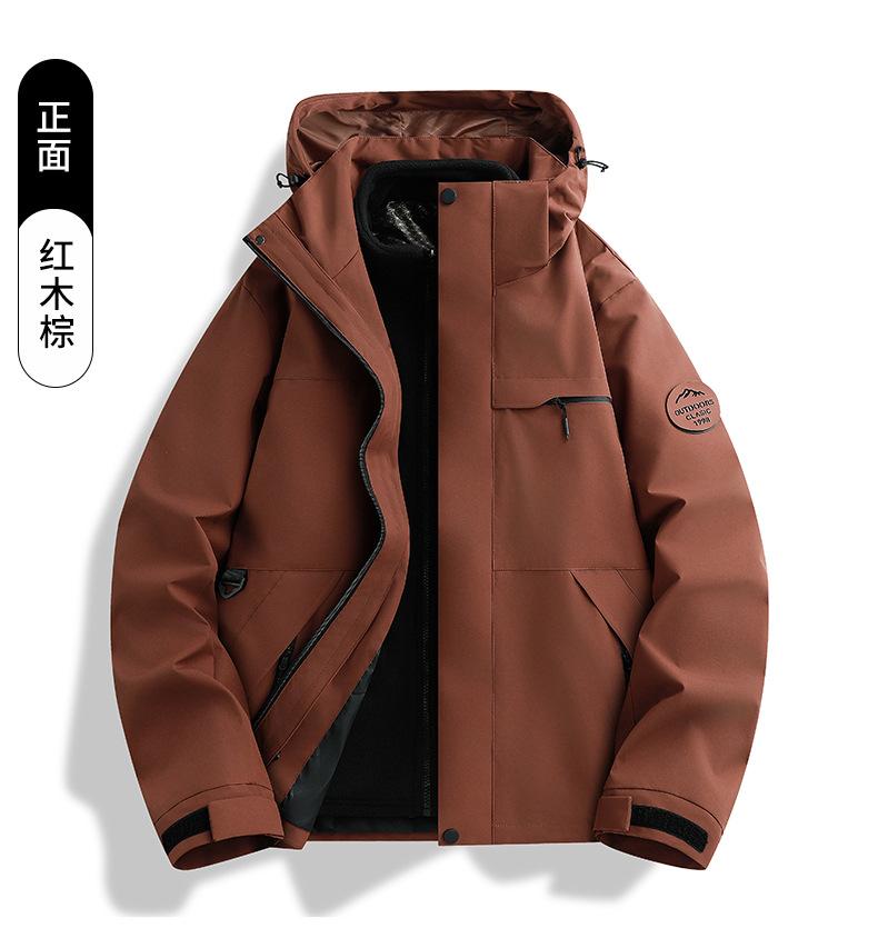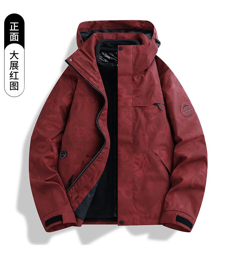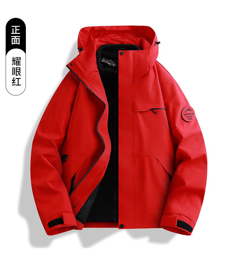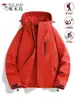 Jaqueta corta-vento feminina vermelha Woodpecker 2025 novo conjunto de montanhismo de alta qualidade destacável três em um à prova de vento masculino