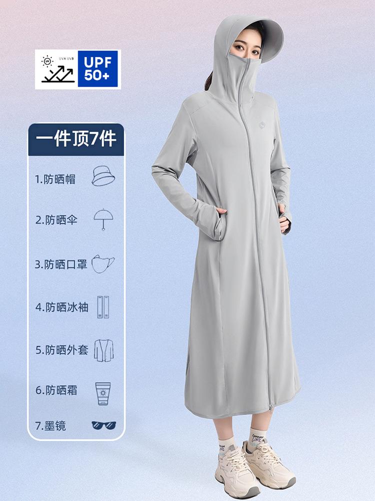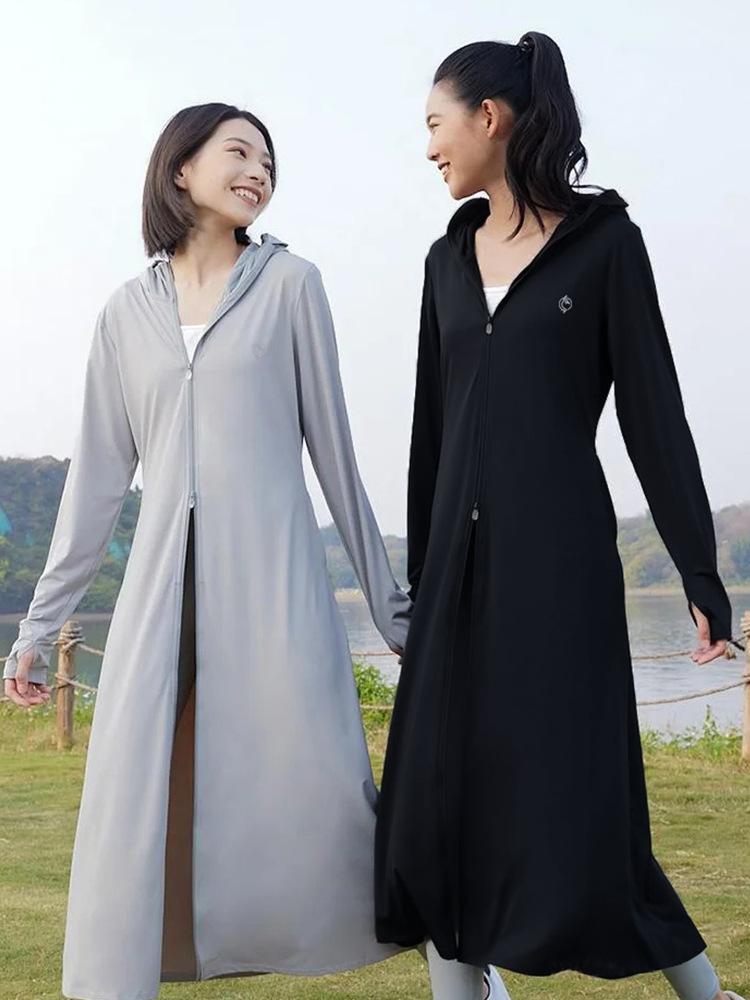 Roupa de Proteção Solar de Seda Gelo de Nylon para Mulheres 2025 Novo Verão Extra Longa Ajuste Slim Anti-UV Roupa de Proteção Solar de Corpo Inteiro para Exterior