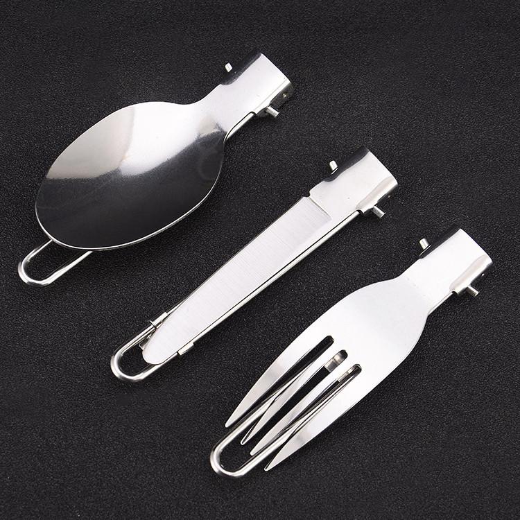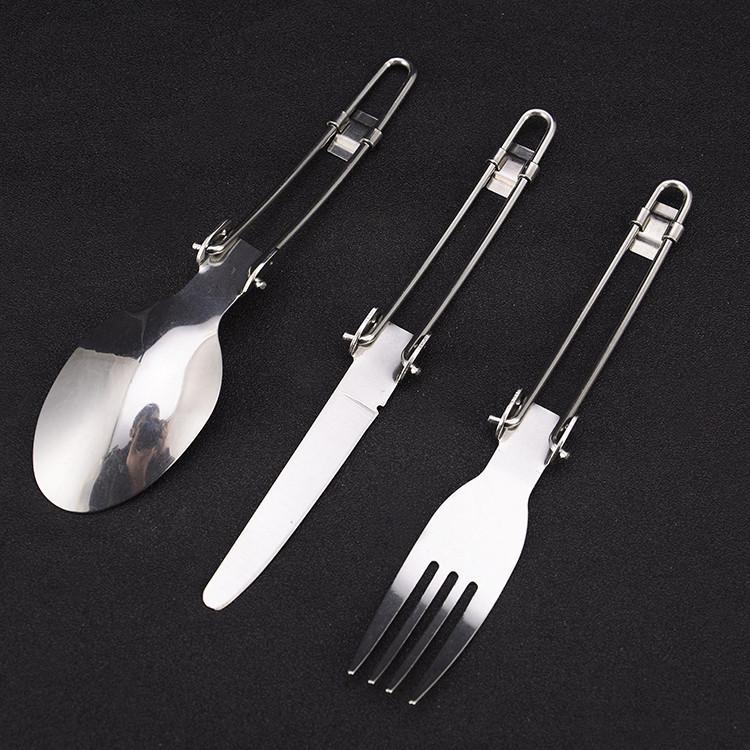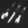 Nome do produto: conjunto de três peças de talheres dobráveis de aço inoxidável, faca, garfo, colher