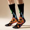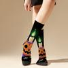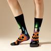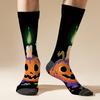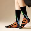 1 par de meias de fantasmas com abóboras e doces, meias divertidas de poliéster até a metade da panturrilha com estampa digital 3D vibrante, macias e confortáveis, perfeitas para presentear ou para o dia a dia.