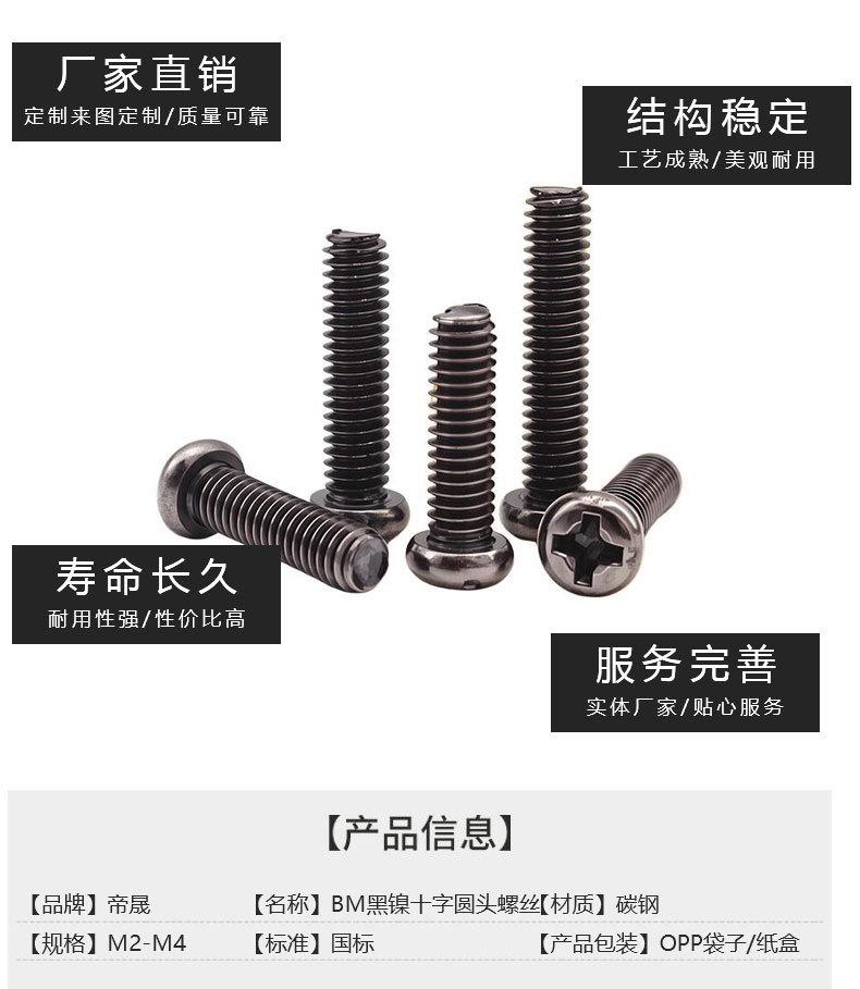 Parafuso de cabeça redonda cruzada de aço carbono PM niquelado preto parafuso de cabeça panela parafuso de máquina parafuso prego parafuso porca atacado M2M2.5M3M4