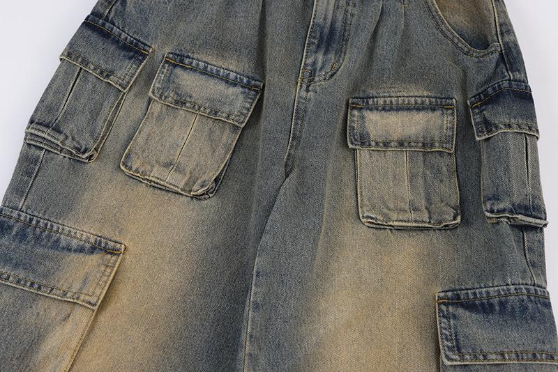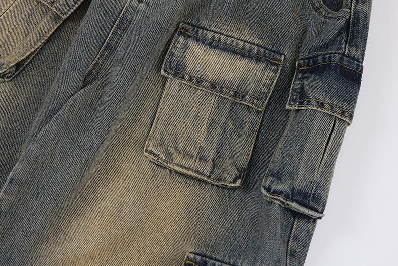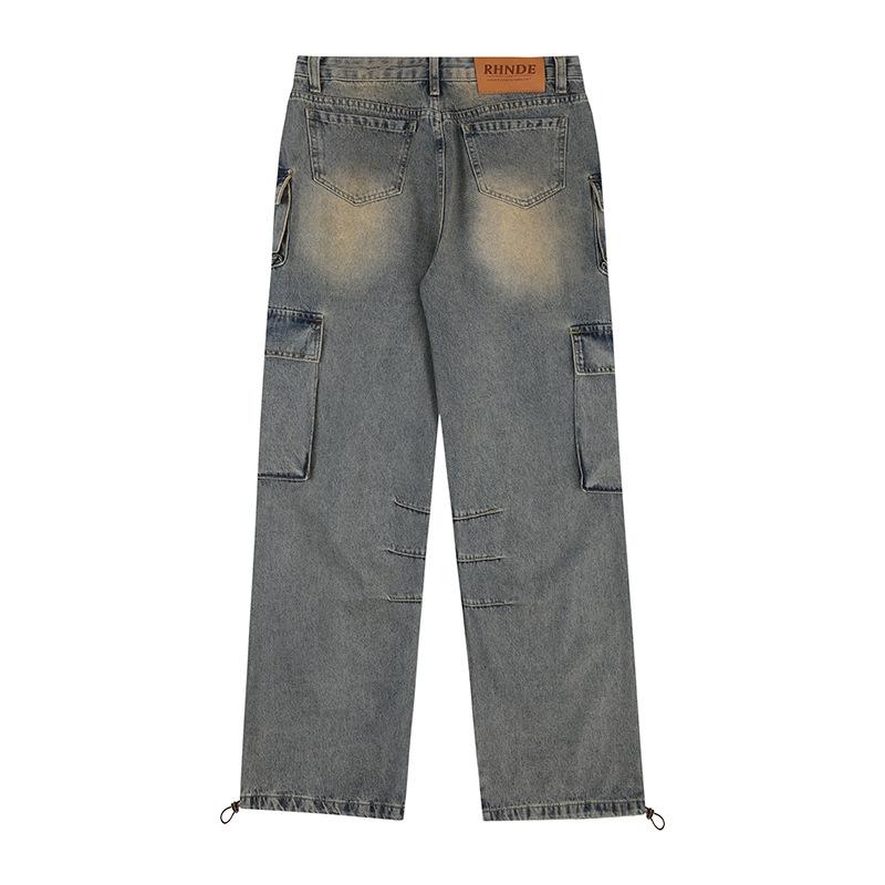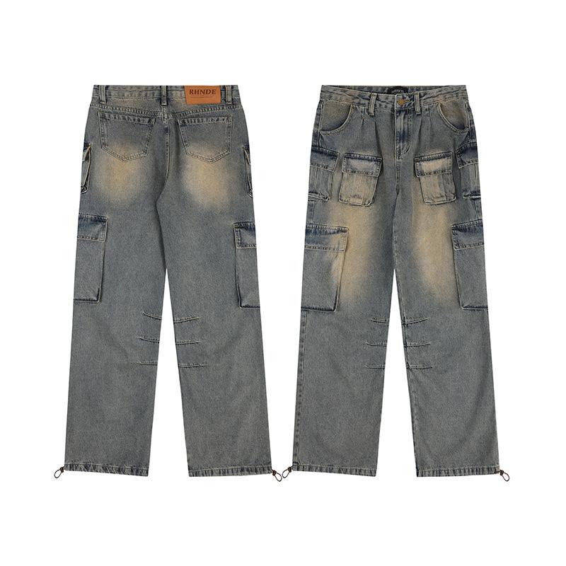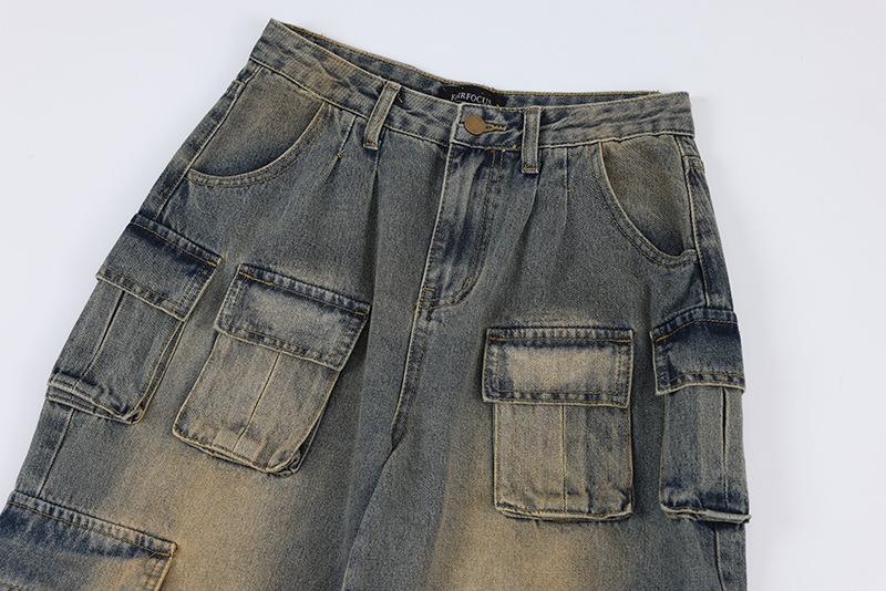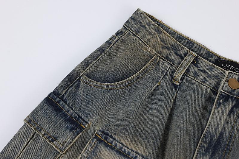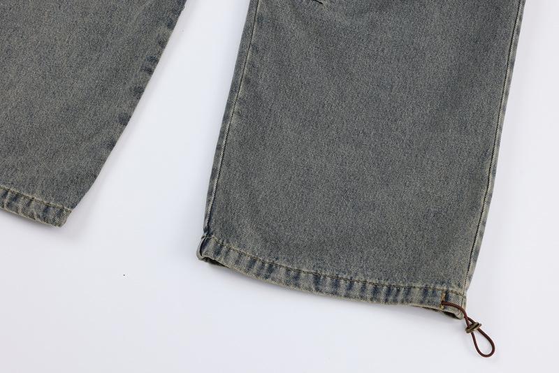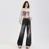 Jeans Retrô Americano High Street Reto Jeans Marca da Moda Nicho Design Sense Solto Perna Larga Calças Street