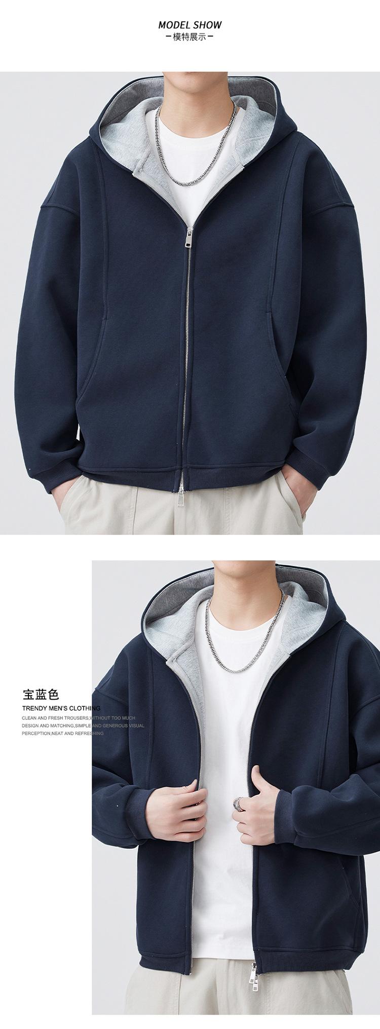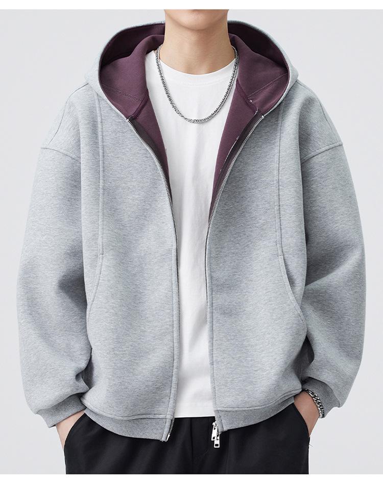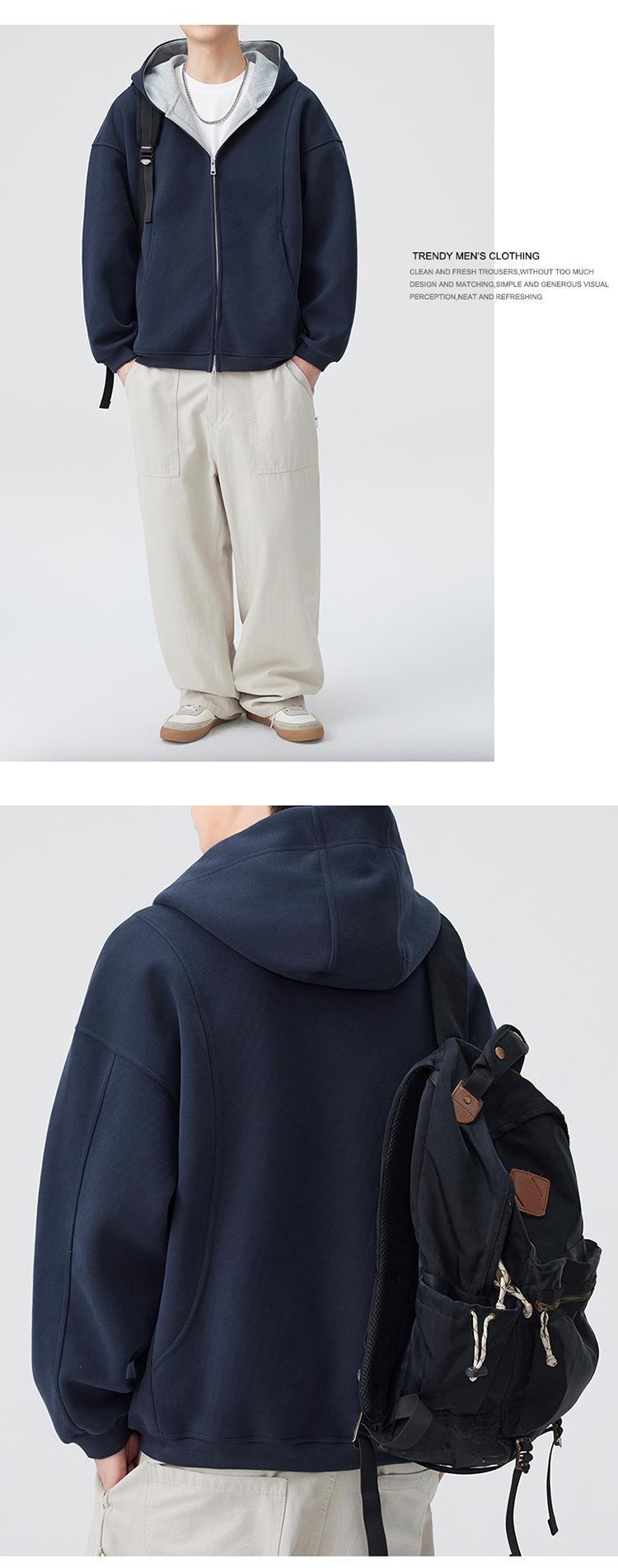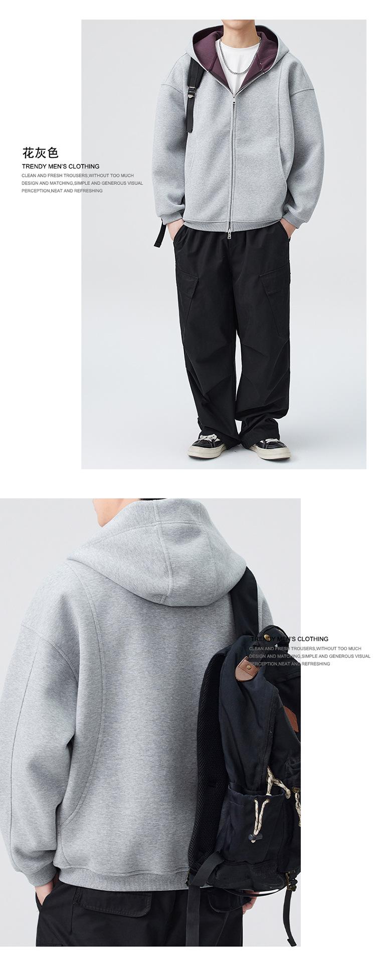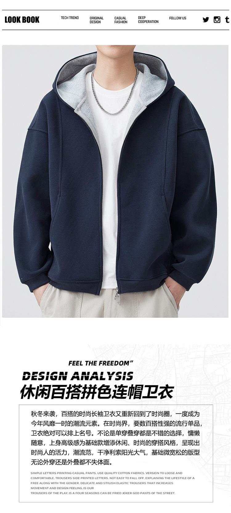 Moletom Masculino Retrô Japonês Outono 2025 Novo Bloco de Cores com Capuz Simples Solto Versátil Jaqueta Estilo Americano Tendência