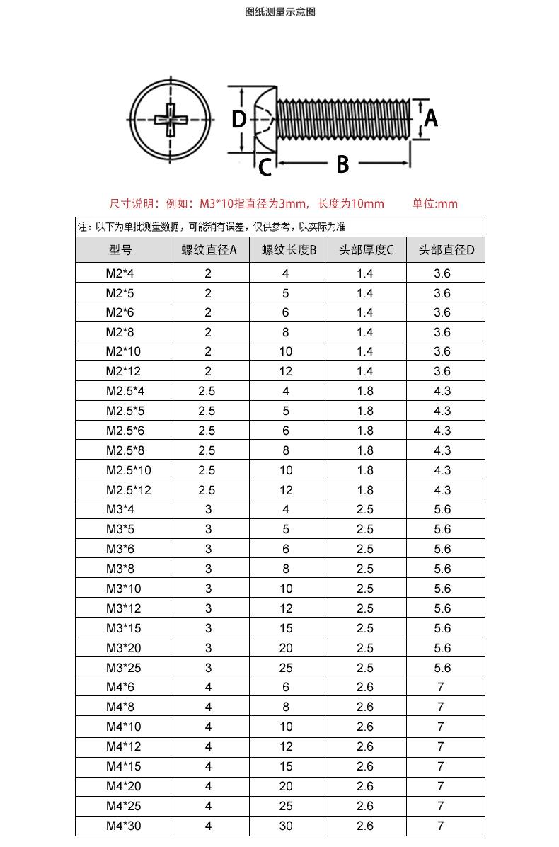 M2*4, M2*5, M2*6, M2*8, M2*10, M2.5*4, M2.5*5, M2.5*6, M2.5*8, M2.5*10, M2.5*12, M3*4, M3*5, M3*6, M3*8, M3*10...